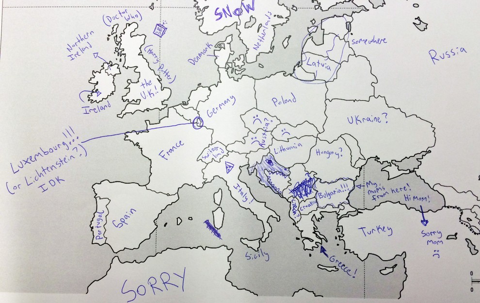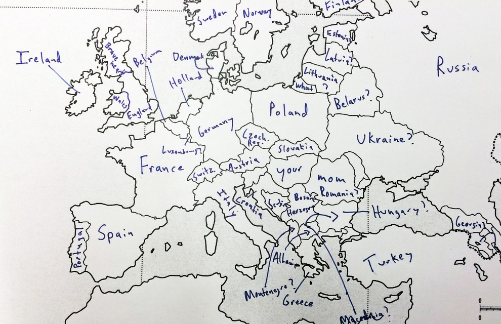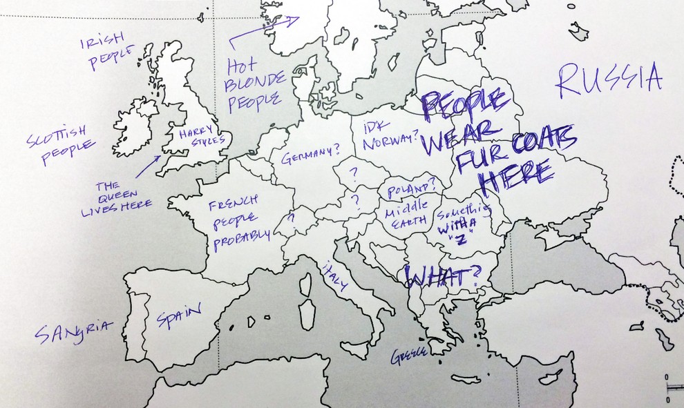 Kako prepričani ste v svoje znanje geografije? Portal Buzzfeed je nedavno postavil Američane na preprost preizkus znanja. Udeleženi v raziskavi so bili naprošeni, naj na 유럽의 지도 유럽 국가의 이름을 쓰십시오. 간단히 말해서 그들은 잘하지 못했습니다. 그러나 그들의 대답은 훨씬 더 재미있습니다. 그러나 미국인들을 너무 가혹하게 판단해서는 안 됩니다. 반면에 미국 50개 주에 대한 영국인의 지식도 극도로 빈약한 것으로 판명되었기 때문입니다.