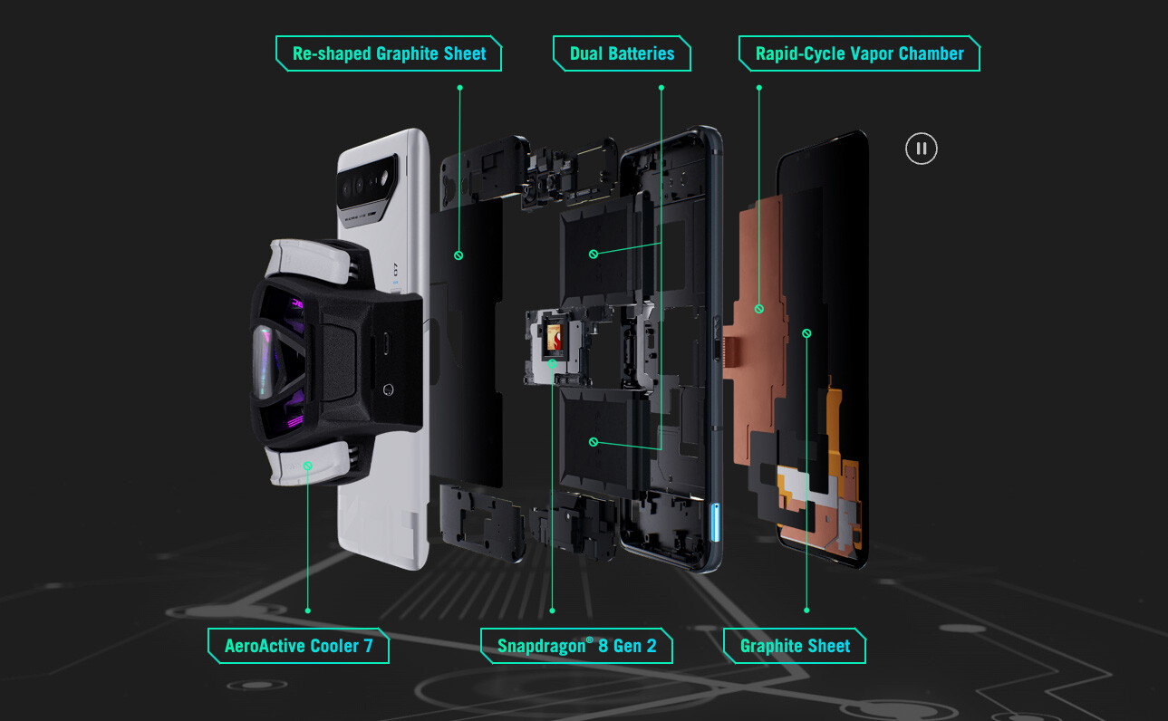 Srce telefona ROG Phone 7 je Qualcommov procesor 스냅드래곤 8 2세대, ki zagotavlja neverjetno raven zmogljivosti, še posebej v kombinaciji z načinom X-Mode naprave. Ta način zagotavlja, da uporabniki dobijo najboljšo možno igralno izkušnjo z robustno življenjsko dobo baterije med vsakodnevno uporabo in maksimalno zmogljivostjo, ko je najbolj potrebna. Družbo procesorju dela družbo tudi izjemno hiter 16GB LPDDR5X delovni spomin.