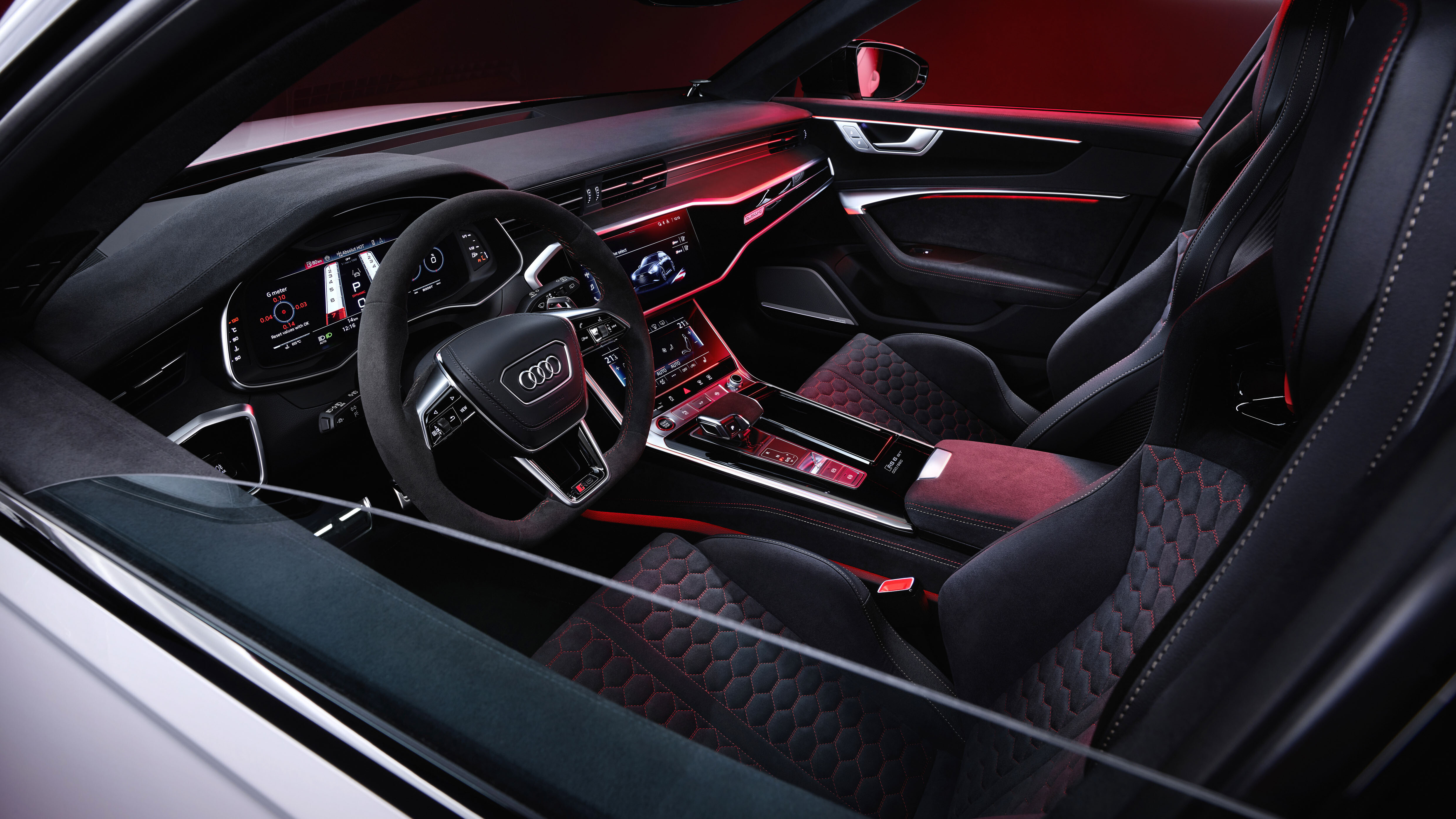 내부는 검은색 가죽과 알칸타라로 장식되어 있으며 좌석에는 빨간색 덮개가 있습니다. 카본 백이 포함된 새로운 스포츠 시트와 센터 콘솔의 한정판 배지는 이 왜건의 고급스러움을 강조합니다. 아우디 계획 RS6 GT는 660대만 생산 전 세계적으로 그 중 85개 유닛이 미국에 도착 캐나다에는 7개만 있습니다.