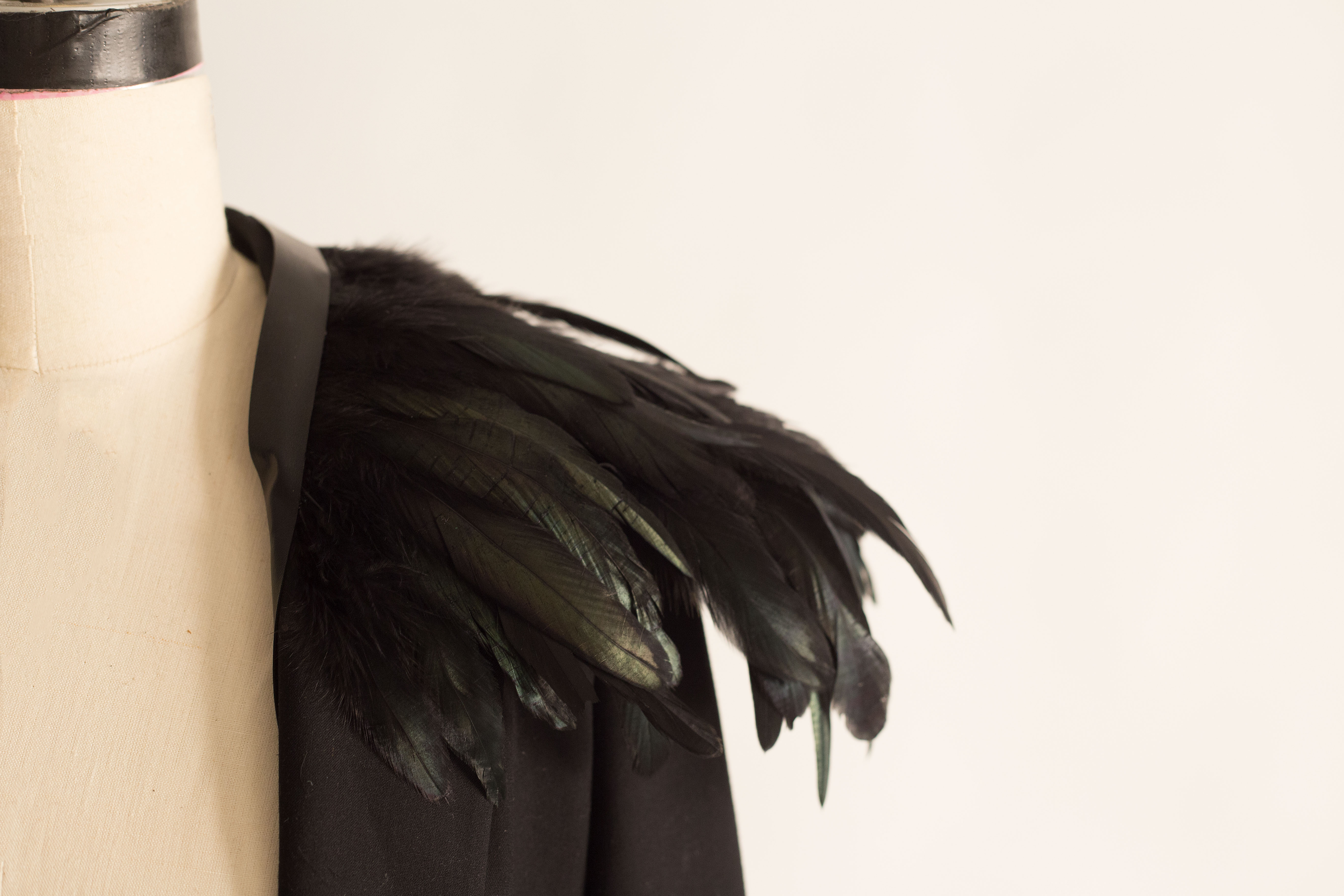 의 경우 perje petelina, ki je prišito okoli ovratnika, krilo pa je s perjem prekrito v celoti. Obe modna kosa imata vgrajen še elektronski kompas, ki je povezan z mehaniko na perju. Ko kompas zazna, da se lastnik usmeri proti severu, perje ”zaplapola”.