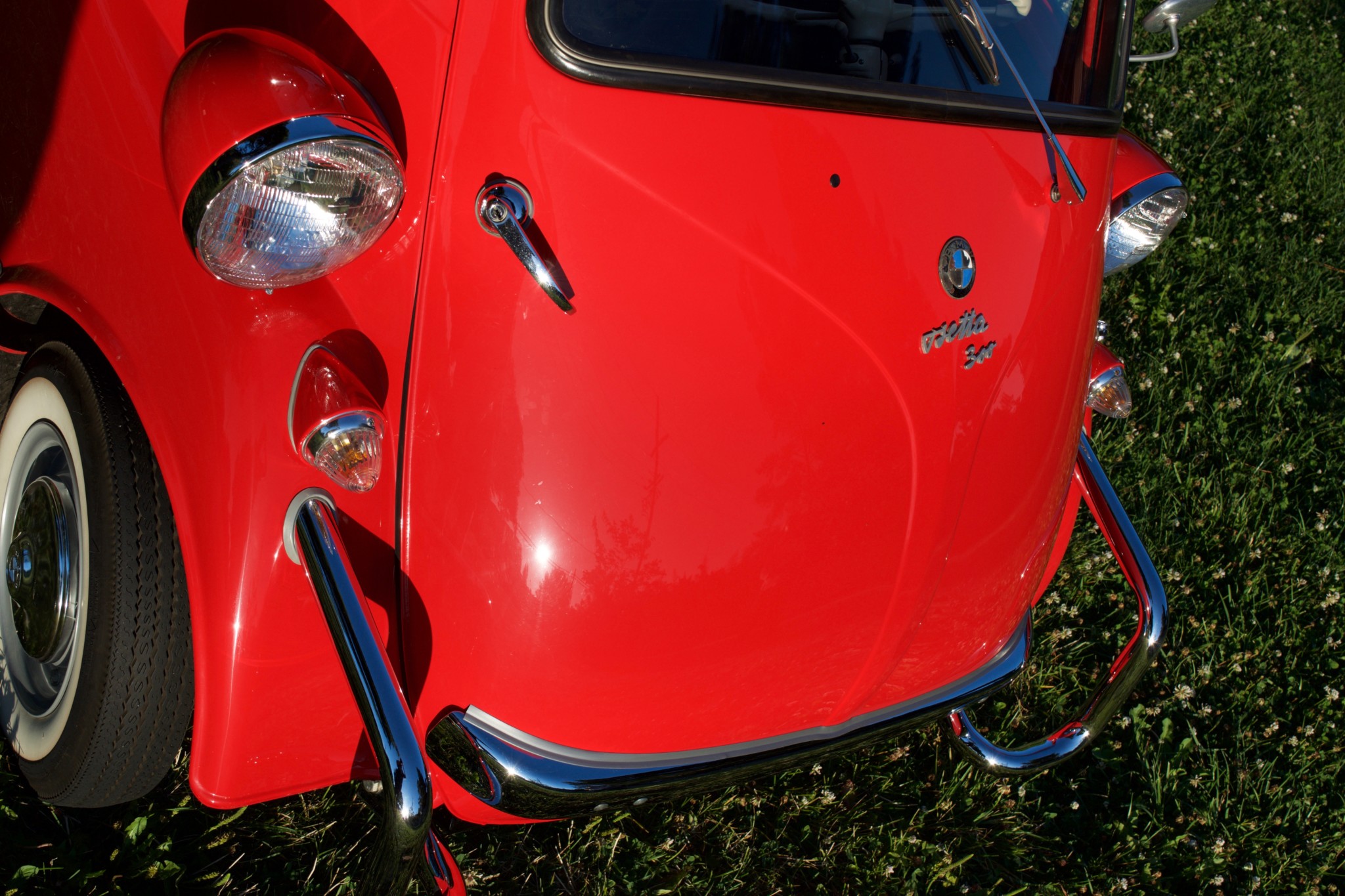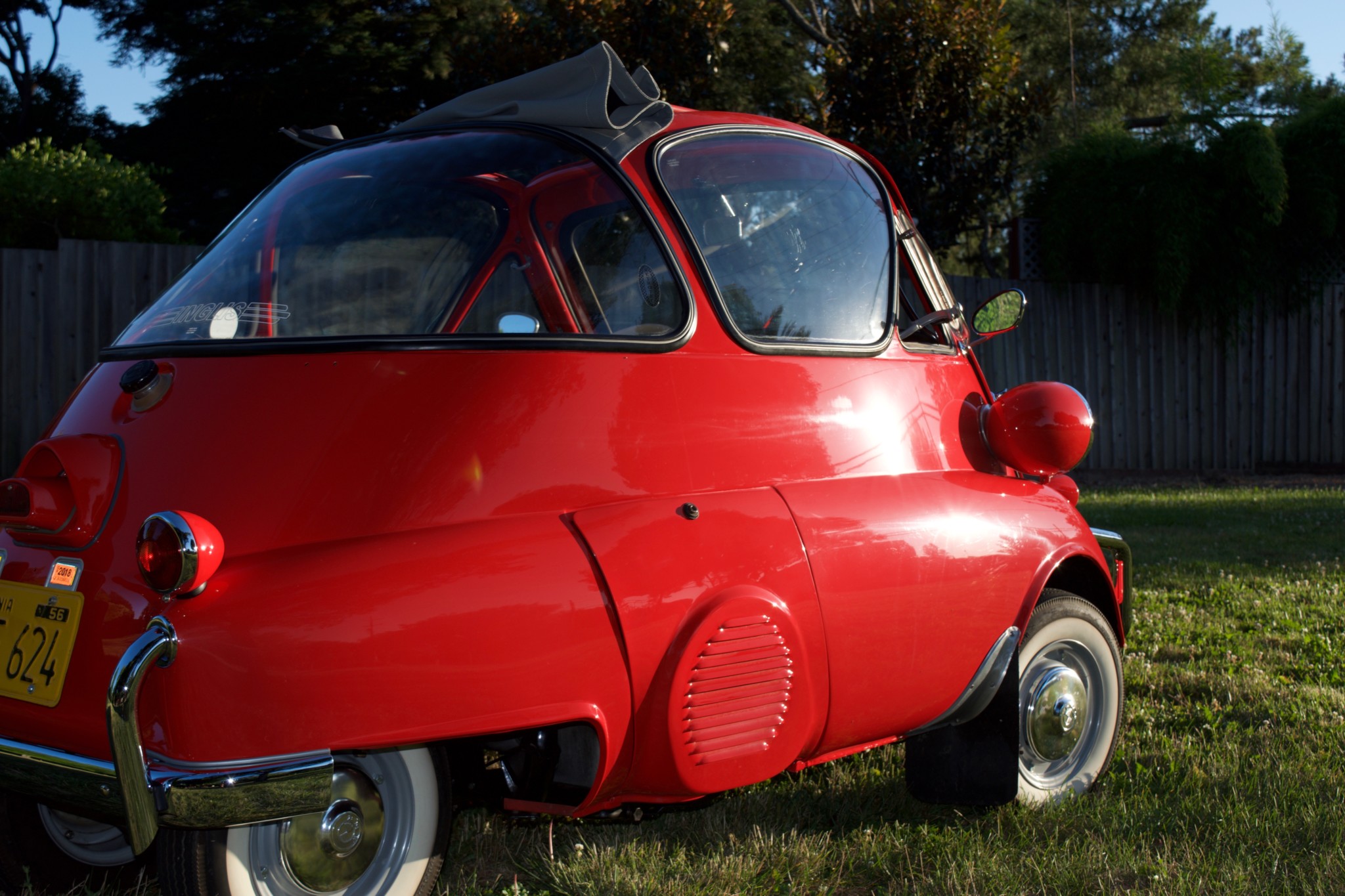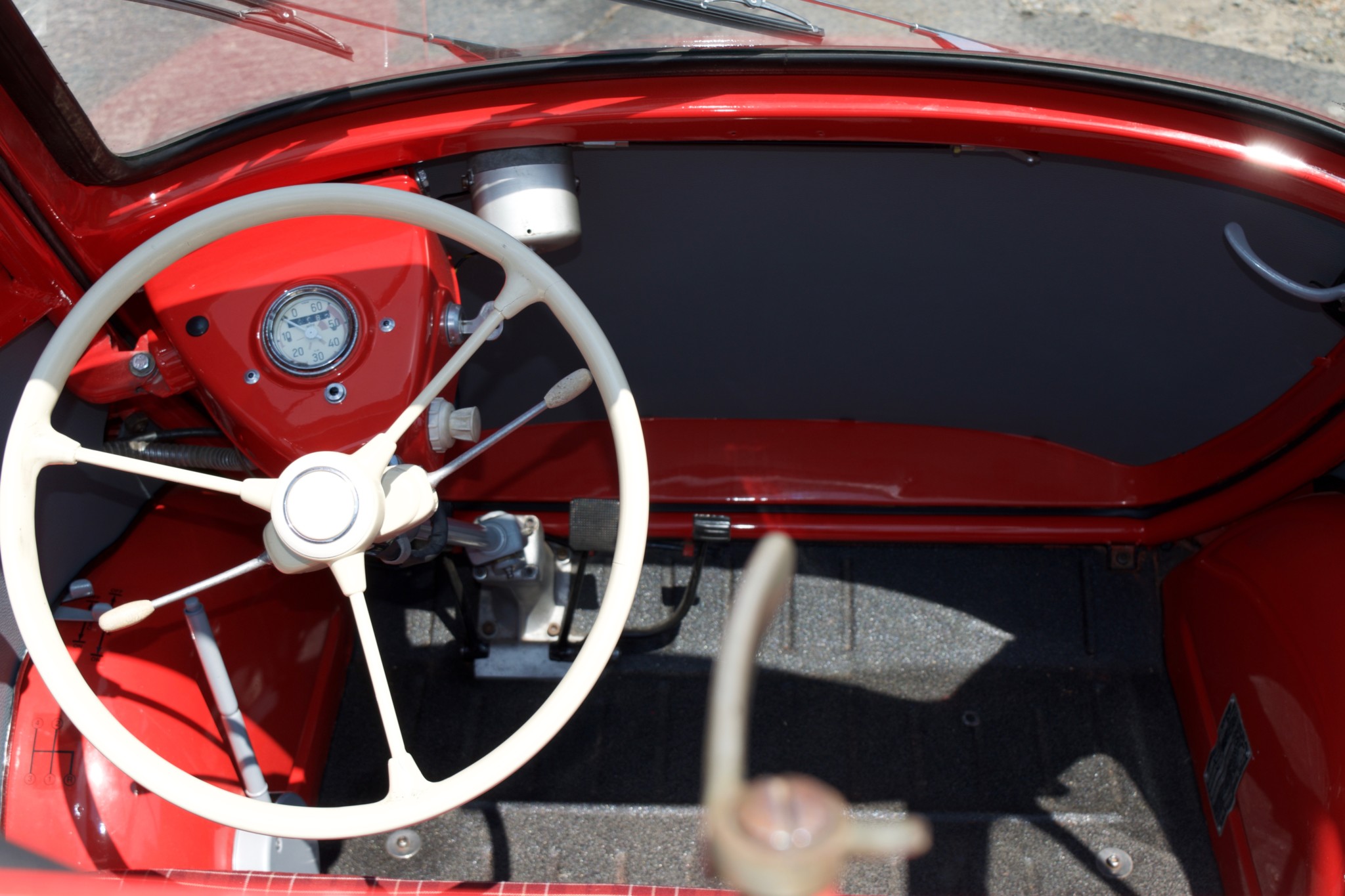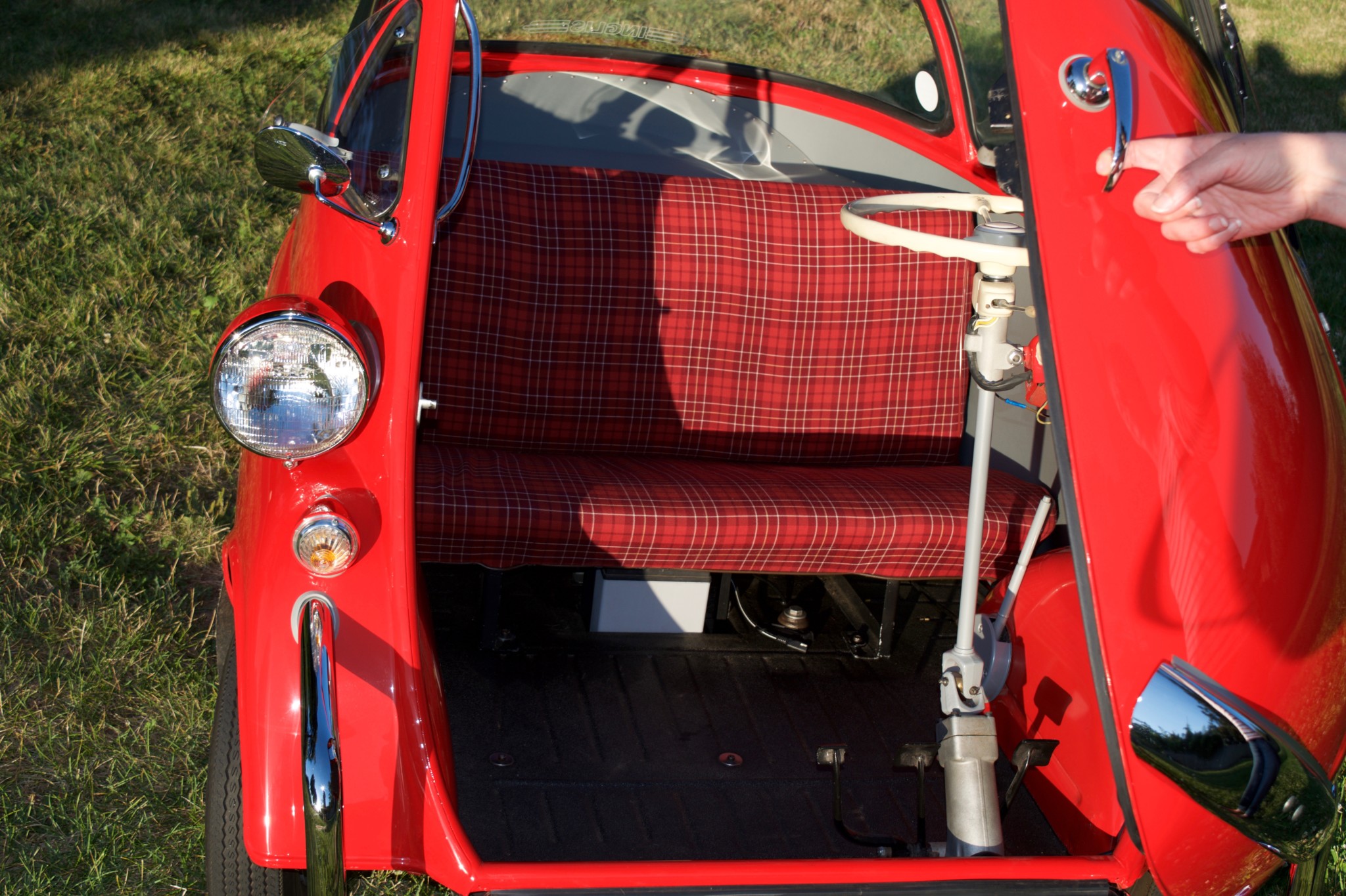 Voznik in sovoznik vstopita v BMW Isetto ~을 통해 prednji del, ki pravzaprav predstavlja nekakšna vrata. BMW Isetta, ki jo lahko vidimo na slikah, je bila pred 30 leti prepuščena propadu na smetišču, a na srečo rešena popolnega uničenja. Isetto je bilo treba temeljito prenoviti, v kar je bila vključena tudi kislinska kopel karoserije, nova barva, osveženi sestavni deli, rdeča notranjost in popolna obnova motorja.