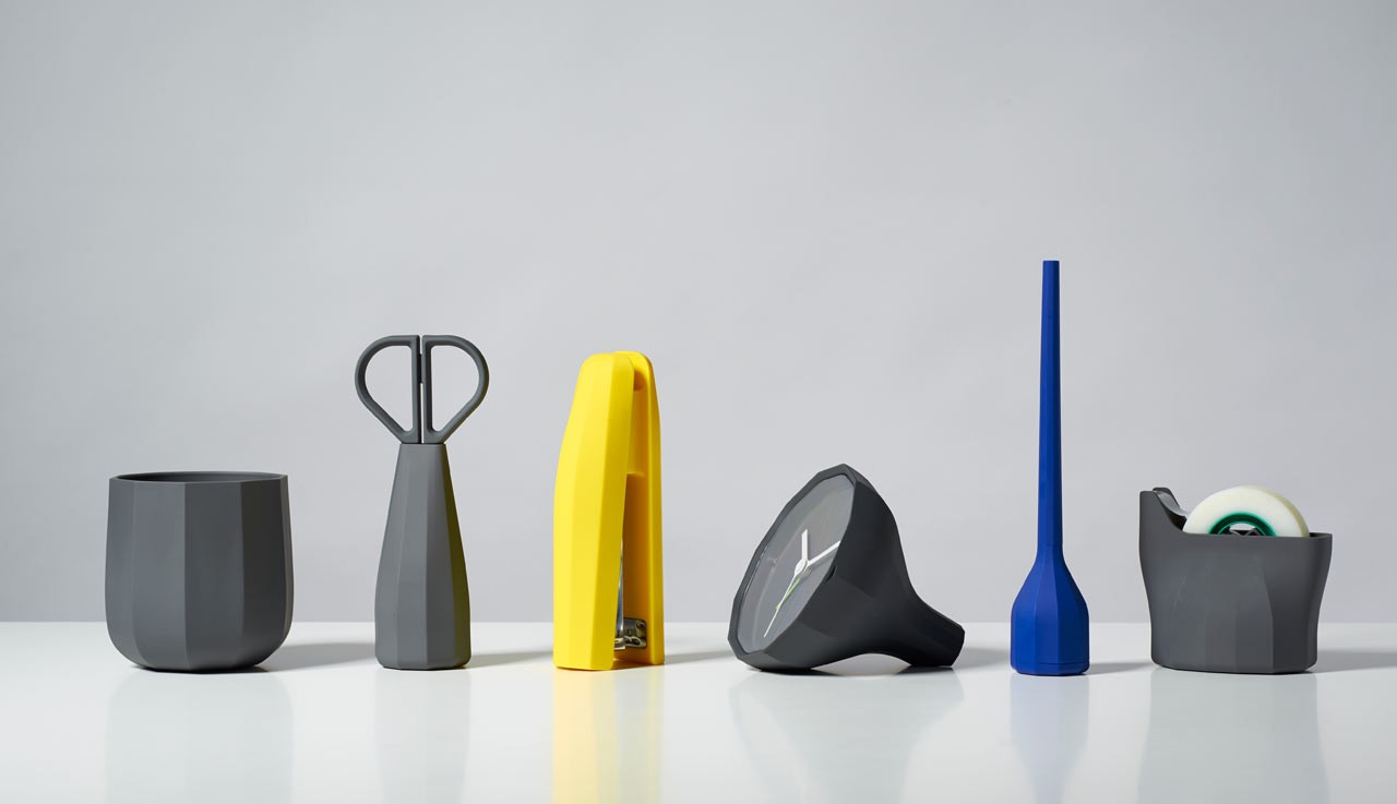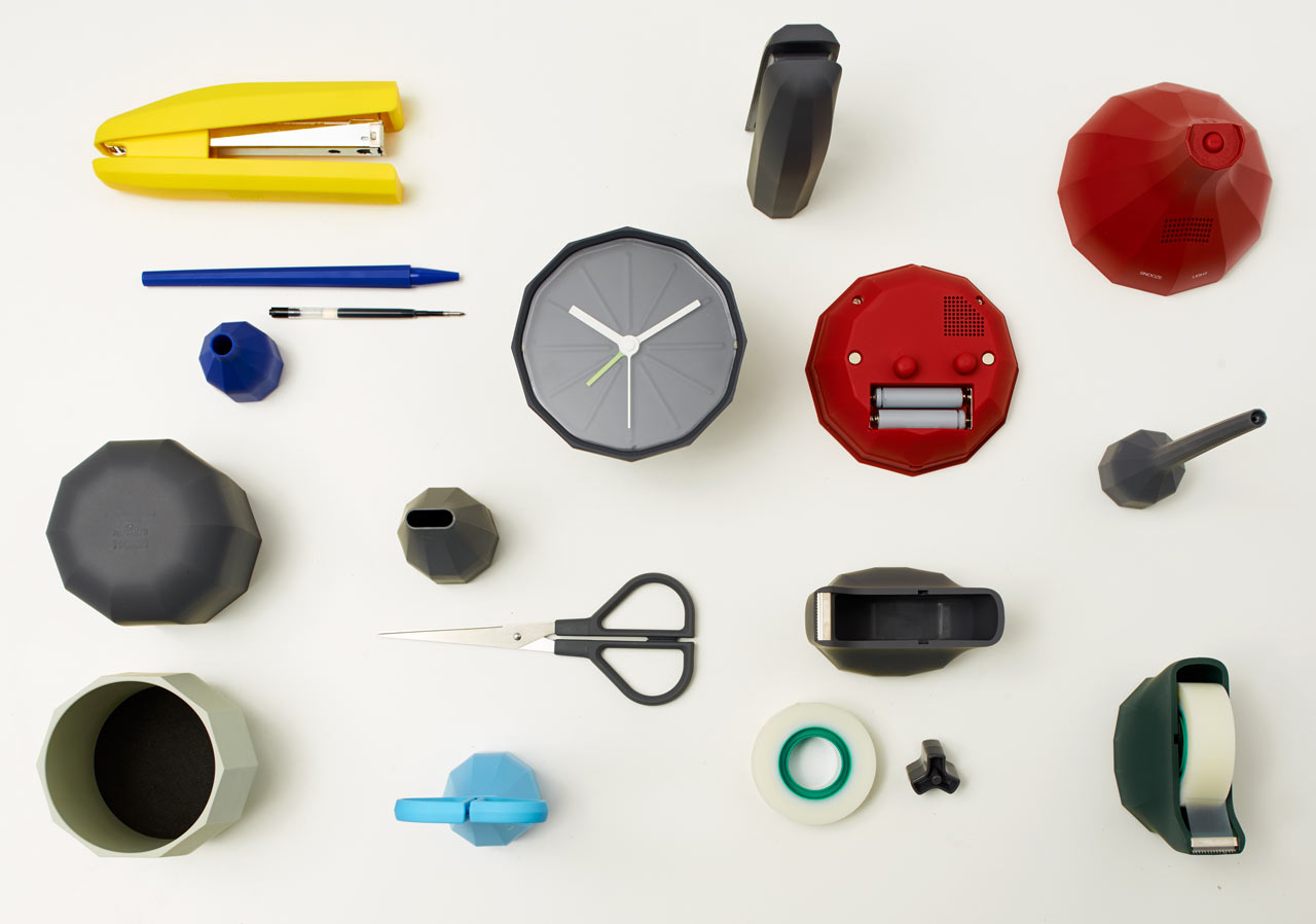 Set pisarniških pripomočkov 바빌론 sestavljajo ura z budilko, spenjač, držalo za lepilni trak, pisalo, škarje in posodica za pisala. Vsak pripomoček je na voljo v dveh barvnih različicah, temno sivi ali živi barvah. Pripomočki so narejeni iz posebne ABS plastike in z dodanim mat učinkom omogočajo mehek oprijem.