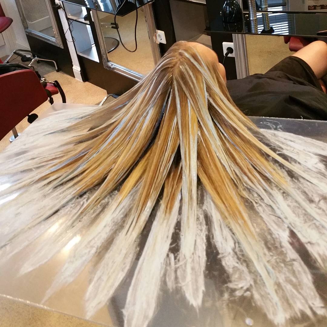 머리 염색 “fluid hair painting” 그가 창조한 KL Christoffersen, ki je pojasnil, da se mu zdi horizontalno barvanje las veliko bolj natančno, saj je boljši približek tega, kako lasje “ležijo” čez dan. Tako ima namreč frizer možnost, da temeljito pregleda vsak sklop las in vidi, kako se barva preliva od vrha las do konic.
