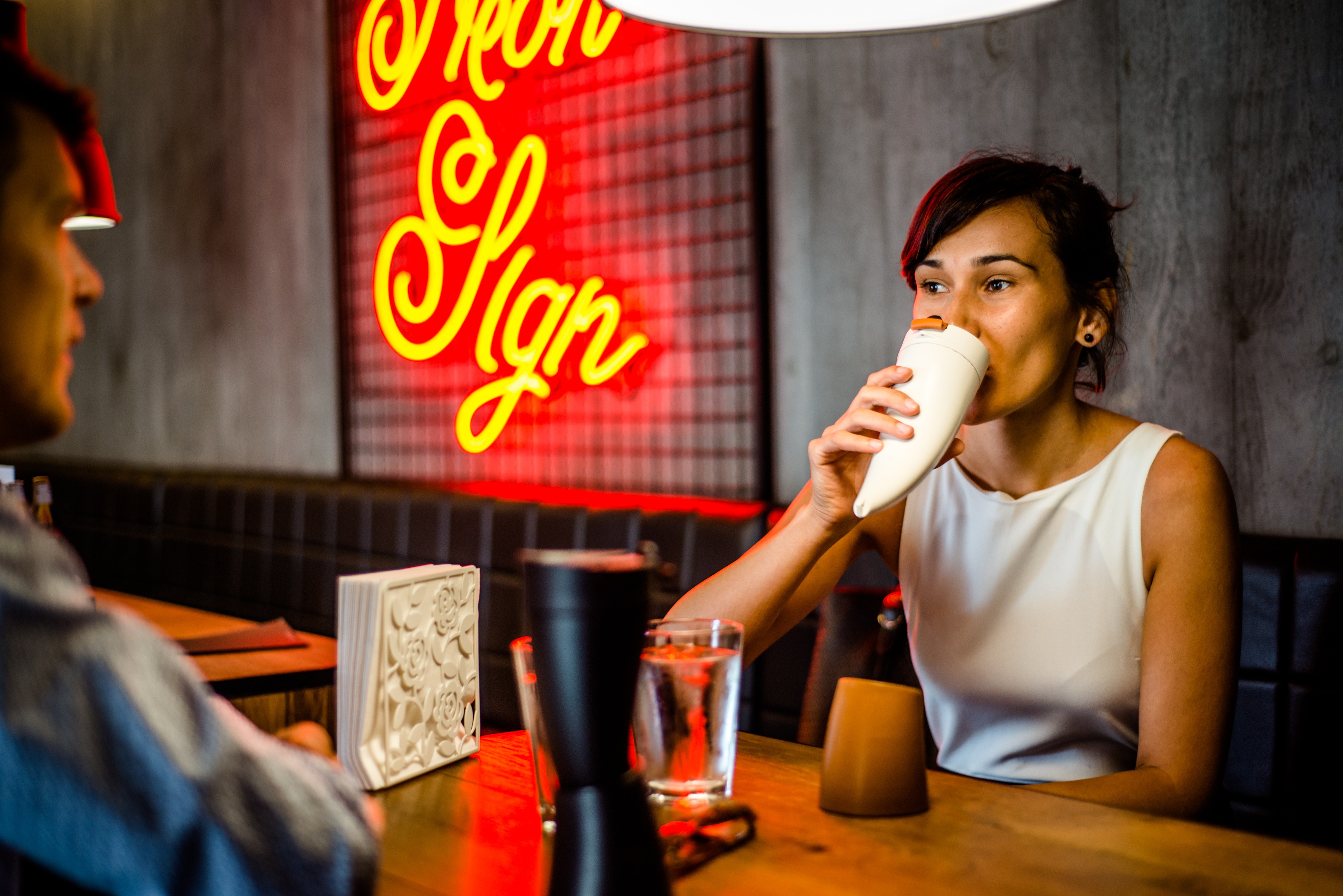 Z nakupom skodelice 염소 머그, izdelane iz 100-odstotnih reciklabilnih materialov, lahko pozabimo na neštete plastične in papirnate lončke. Napitek bo v skodelici topel vsaj dve uri, Goat Mug pa se od ostalih morebiti podobnih produktov loči tudi po priročnem traku, s katerim skodelico povsem enostavno prenašamo na hrbtu, pri čemer smo lahko brez skrbi, saj se tekočina med hitenjem po vsakodnevnih opravkih nikakor ne bo razlila.