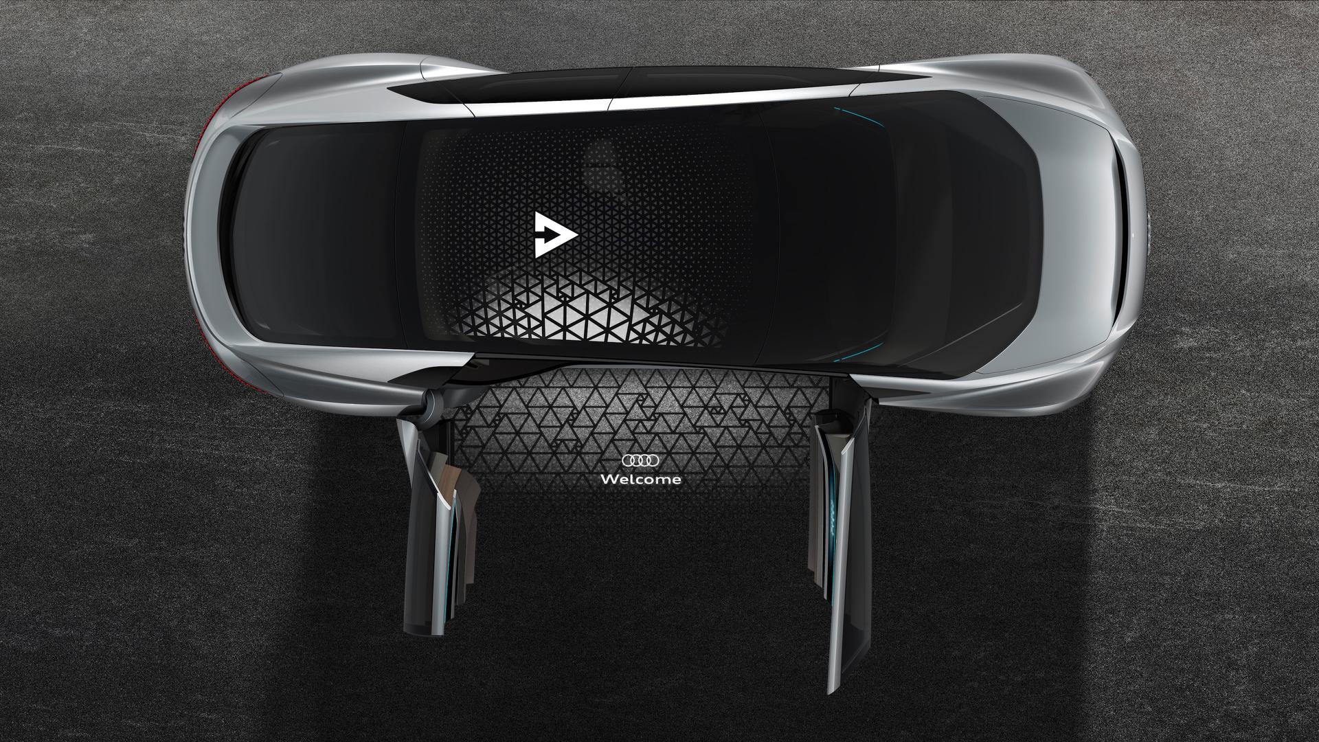 Audijeva vizija je drzen in futuristični premik. Če namreč ni človeškega posredovanja in avtomobil vozi sam od sebe, potem odpade množica elementov, ki smo jih vajeni pri klasičnih vozilih. Kar je že kar nekoliko grozljivo. Priznajte! Tako na primer niso potrebni klasični žarometi, saj avtomobilski senzorji opravijo vse delo. Luči dobijo povsem druge funkcije, lahko osvetljujejo predmete ob cesti in ljudi ter jim kljub premikanju sledijo. Vsekakor drugačno doživetje. Luči se lahko uporabljajo za komunikacijo z drugimi samovozečimi vozili …