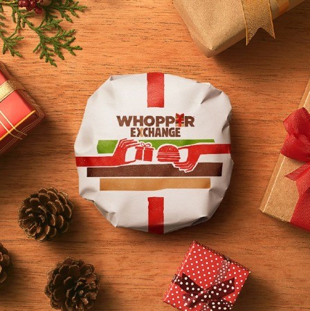 26. decembra 2016 bo v izbranih restavracijah s hitro prehrano 버거 킹 denarna valuta tudi darilo. Gostje bodo lahko namreč svoje nezaželeno božično darilo zamenjali za znameniti hamburger Whooper. Če torej ne veste, kaj bi s svojim darilo, je to odličen način, da ga vnovčite. Če se bojite, da vas bo pekla vest, ker se boste odpovedali groznemu šalu, ki vam ga je podarila babica, nikar, saj bo Burger King vsa prejeta darila, ki jih bo zamenjal za svoje sočne hamburgerje (pogoj je, da so nerabljena in ”normalna”), podaril 자선 목적으로.