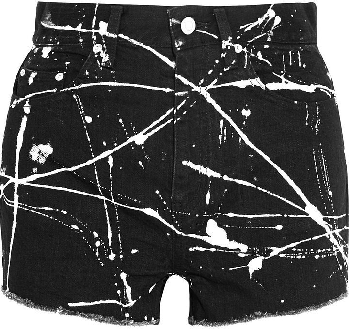 Dolge noge pokažemo! Jasno in glasno se sprehodite v zabavnih odrezanih kratkih hlačah. Pobeljeni madeži bodo privabili oči na vaše dolge noge. Kratke hlače lahko kombinirate s suknjičem.