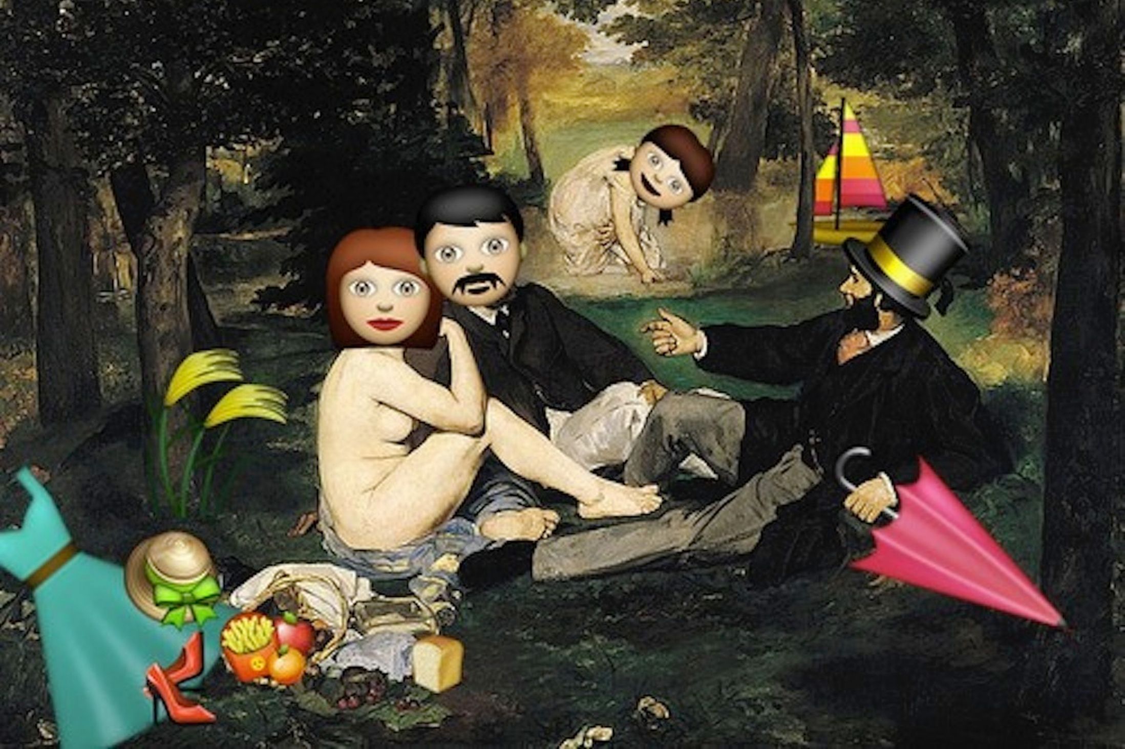21세기식 변신을 거친, 재활용된 걸작 그림들이 온라인에서 공유되고 있으며, 얼굴 대신 재밌는 스마일리 얼굴이 그려져 있습니다.