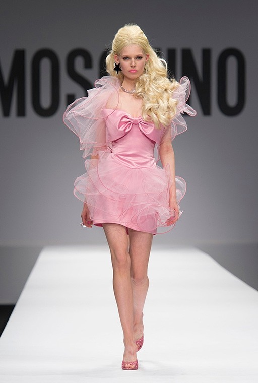 ~에 밀라노 패션위크 so se na Moschinovi modni reviji po pisti sprehodile punčke 바비 v človeški velikosti. Manekenke, ki so nosile modne kreacije pretežno rožnate barve, so presenetile z močnim make-upom, platinastimi kodri in avtentično predstavitvijo v klasičnem Barbie slogu. Ena izmed njih je namreč pisto zavzela obuta v kotalke, druga je s seboj pripeljala roza plastičen kovček.
