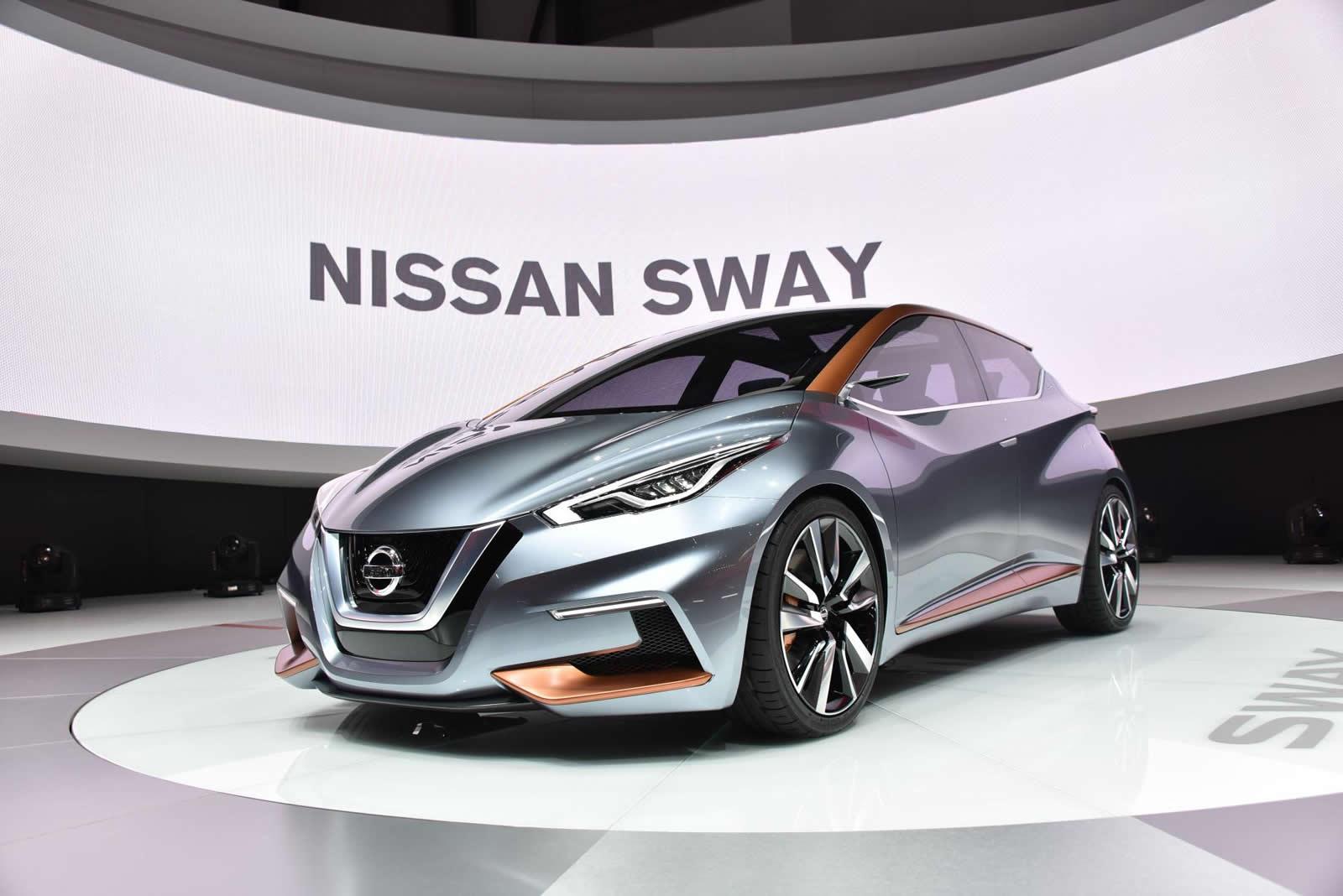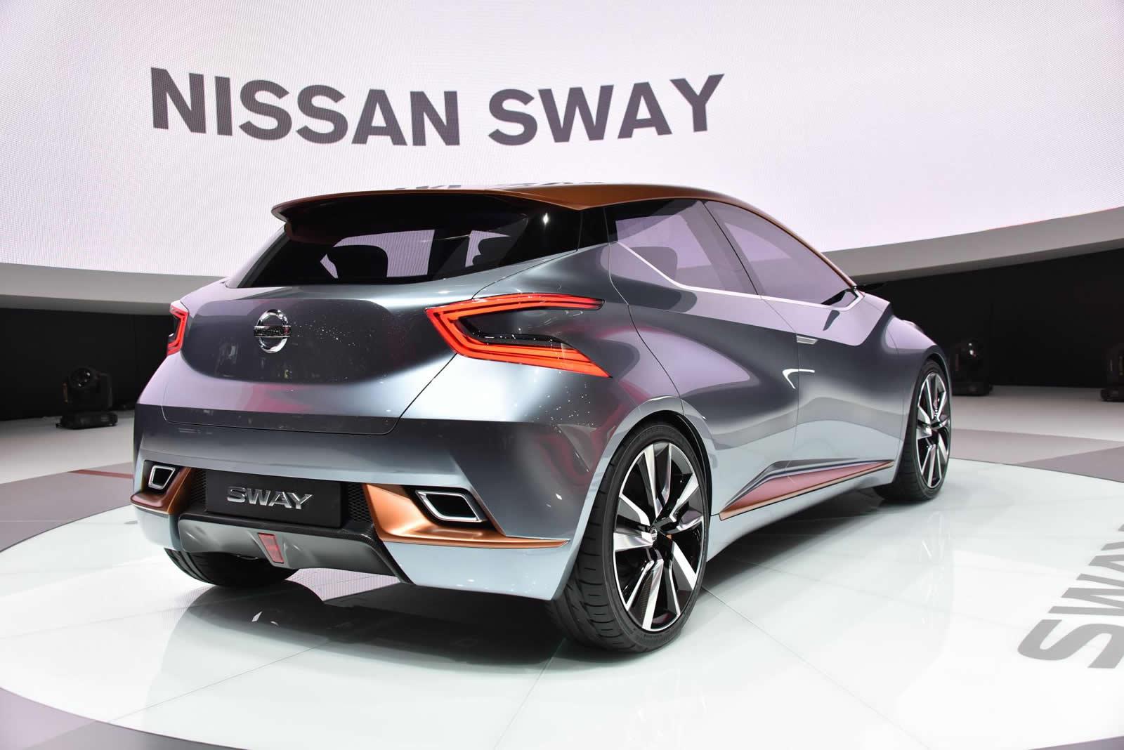 일부 "티저" 사진 이후 Nissan은 차세대 닛산 마이크가 어떤 모습일 수 있는지 제안하는 현대 도시 자동차에 대한 연구를 발표하고 발표했습니다. 닛산 스웨이는 첨단 기둥 없는 디자인과 도어 투 도어 개방 기능을 제공합니다. 날카로운 선, 팽창된 후드, 스포티한 범퍼 및 두 개의 대형 사다리꼴 배기 "트럼펫" 형태의 후면 마감이 특징입니다.