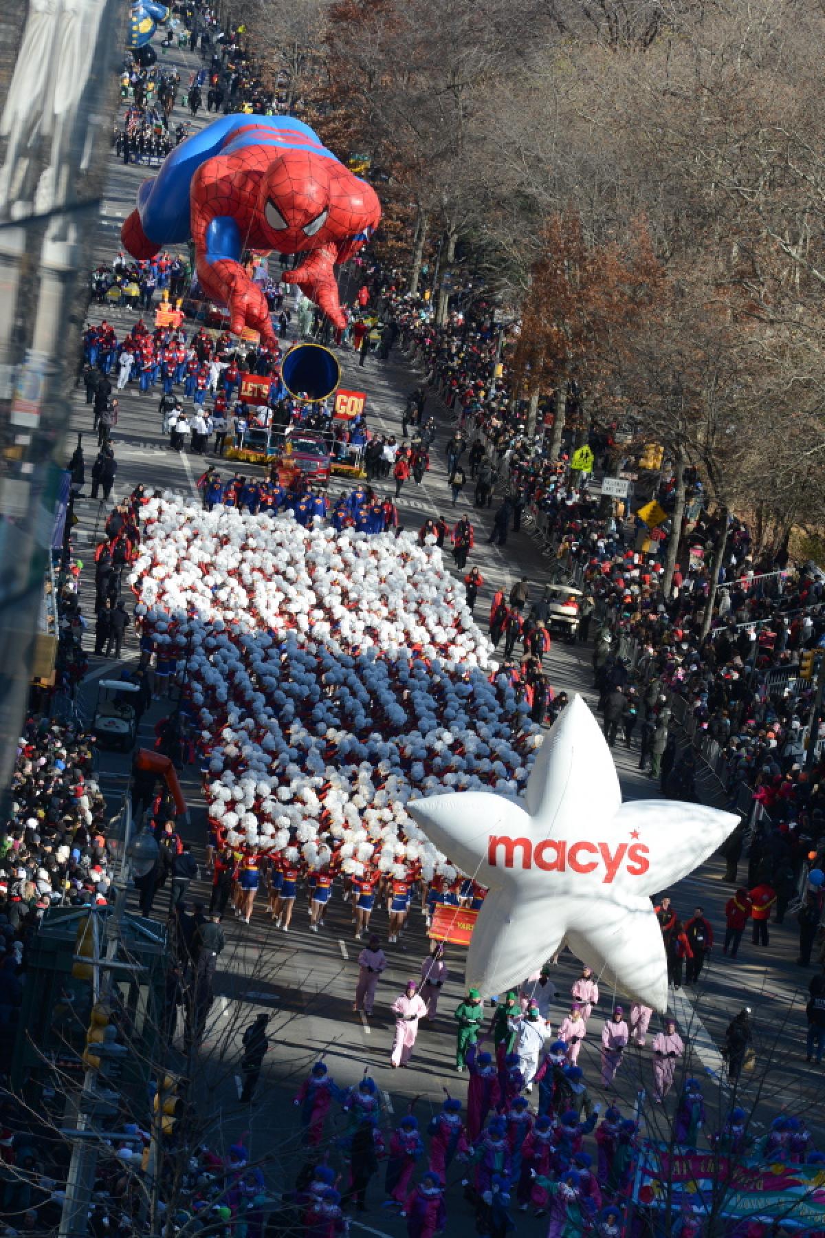 매년 추수감사절이면 미국의 쇼핑 체인인 메이시스(Macy's)는 시끄러운 밴드의 리듬에 맞춰 센트럴 파크 서쪽을 따라 펼쳐지는 영화와 만화에 등장하는 거대 비행 영웅들의 퍼레이드를 조직합니다.