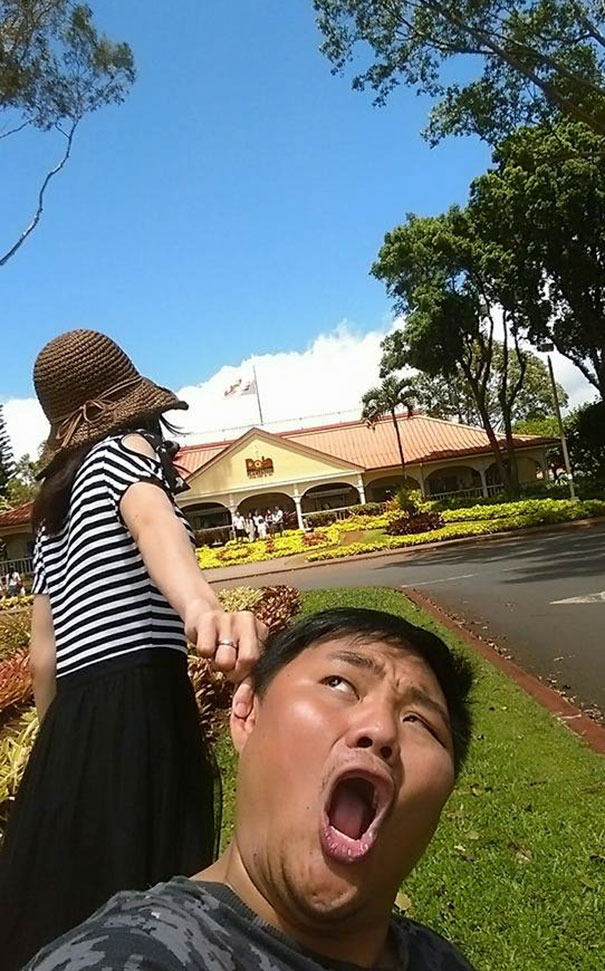Seveda gre le za parodijo na slovite fotografije ruskega para (od leta 2015 tudi zakonca) #FollowMeTo, ki je nastala med izletom po 하와이, na njih pa Agnes Forresta namesto za roko vodi tako, da ga kot kakšnega lumpa vleče za ušesa, lase in celo za nos. Deluje precej boleče, o čemer se lahko prepričate tudi sami. Forrestu izlet zagotovo ni ostal v lepem spominu.