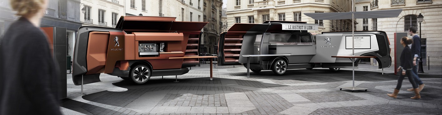 푸조는 바퀴 달린 레스토랑 'Le Bistrot du Lion'이라는 혁신적인 컨셉을 선보였습니다. 이동식 비스트로는 현대적인 푸조 밴 또는 "푸드 트럭"에서 직접 고품질 요리를 제공하기 위한 혁신적인 옵션을 결합합니다.