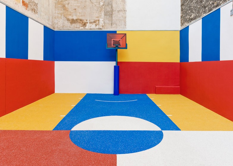 Poleg igrišča- navdahnilo ga je umetniško delo ”Športniki” (štirje moški pozirajo negibno in imajo na sebi pisano opravo) ruskega umetnika Kazimirja Severinoviča Maleviča, predstavnika ruske avantgarde- se od leta 2014 nahaja tudi košarkarska trgovina Pigalle. Podlaga je iz gumijastega granulata EPDM (etilen-propilen-dien-monomer), prevleke, ki jo često uporabljajo za športne površine in pri igralih na otroških igriščih.