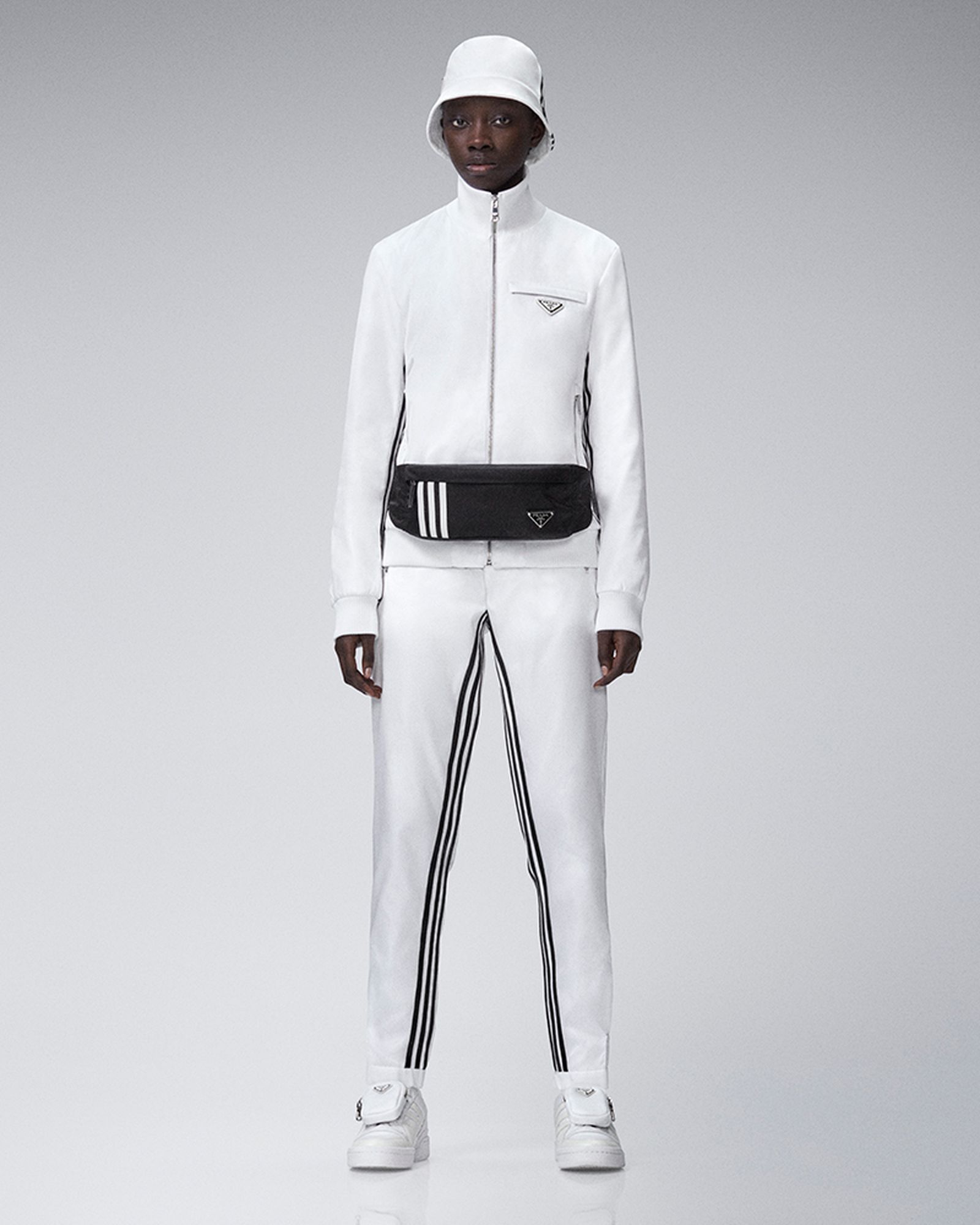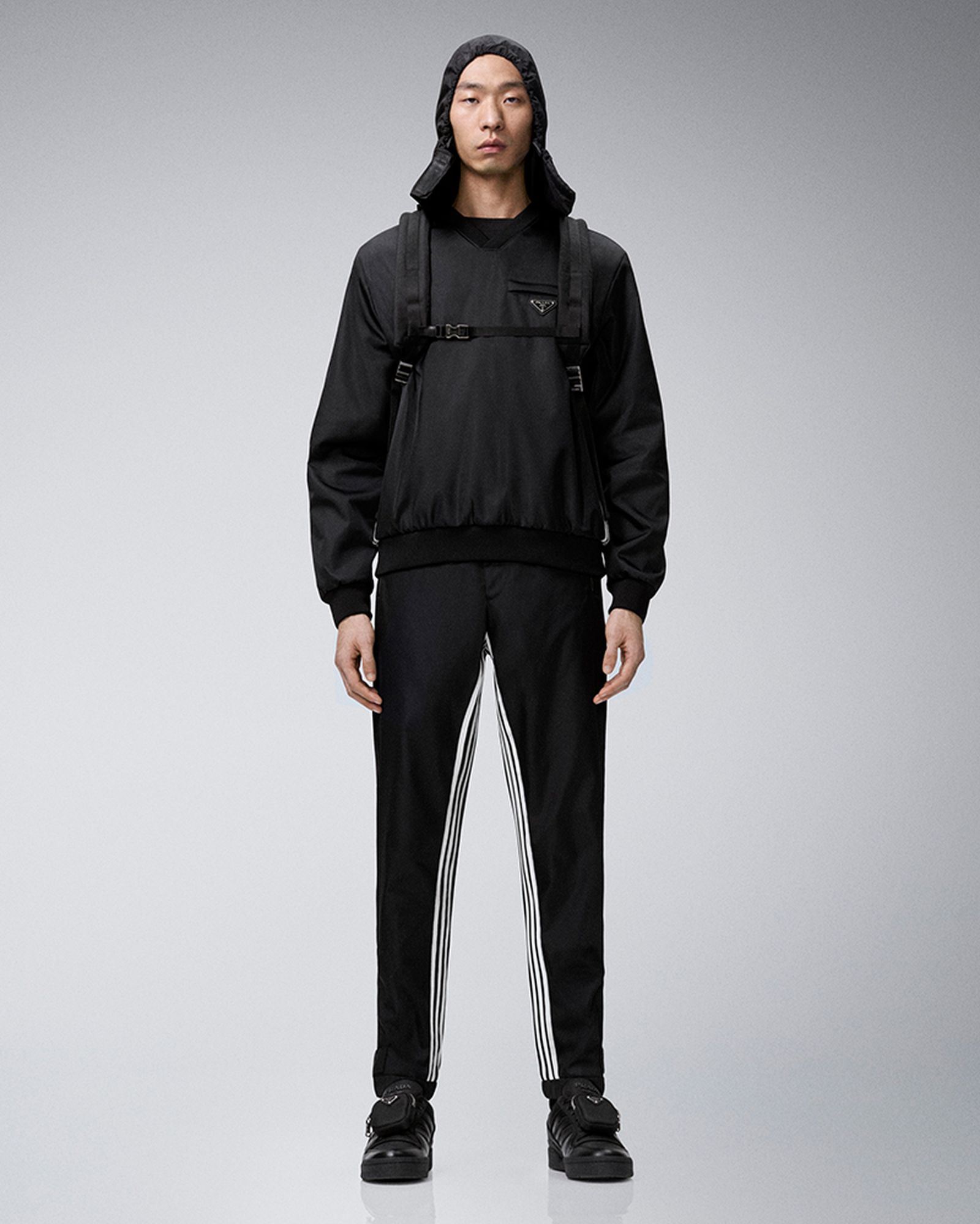 첫 번째 의류 컬렉션은 생산 측면에서 중요한 진전을 나타내며 각 제품은 두 브랜드의 디자인 언어를 결합합니다. 상의 아디다스 세 개의 줄무늬는 가장 유명한 실루엣에 교묘하게 사용됩니다. 프라데, 이탈리안 패션 하우스의 시그니처가 있으면서 프라다 리나일론 컬렉션의 모든 부분에서 큰 역할을 합니다.