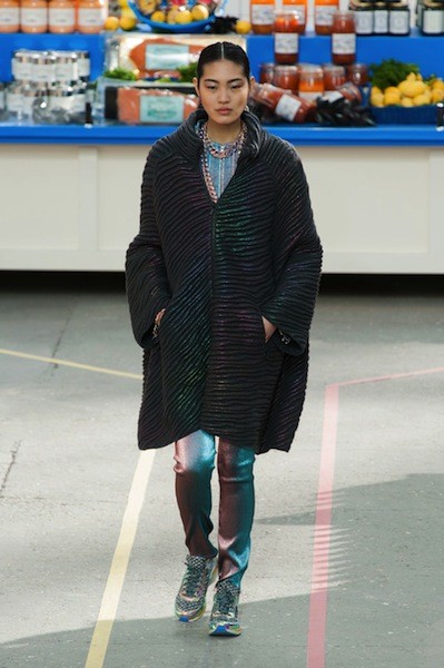 Na modni reviji na letošnjem pariškem tednu mode ~이다 modni guru 칼 라거 펠트 ponovno dokazal, saj je Chanelove kultne kose, kot je znameniti škatlast suknjič, uspešno osvežil in na modno pisto poslal tudi nekaj inovativnih kosov, ki so tako specifični, da se še sprašujemo, če so nam res všeč. Vsekakor nam je jasno, da je ljubitelj vsega modernega odličen poznavalec sodobne popularne kulture, kar mu služi kot odlična inspiracija pri oblikovanju vedno zanimivih kolekcij. Všeč so nam barviti plašči, ki poživijo turobne zimske dni, o nakupu preluknjanih pajkic, ki delujejo kot da so bile malce predolgo v omari, polni moljev, pa bomo še temeljito premislili.