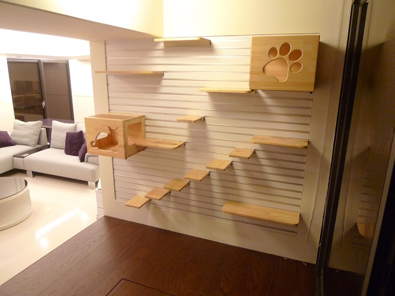 Rade tudi opazujejo dogajanje okoli sebe in se na splošno rade razvajajo. Zato so pri podjetju Catswall Design ustvarili mačjo igralnico, katero lahko preurejate kot vam je volja in kakor ustreza vaši mački. Igrala so izdelana iz lesa in se poljubno prestavljajo po steni.