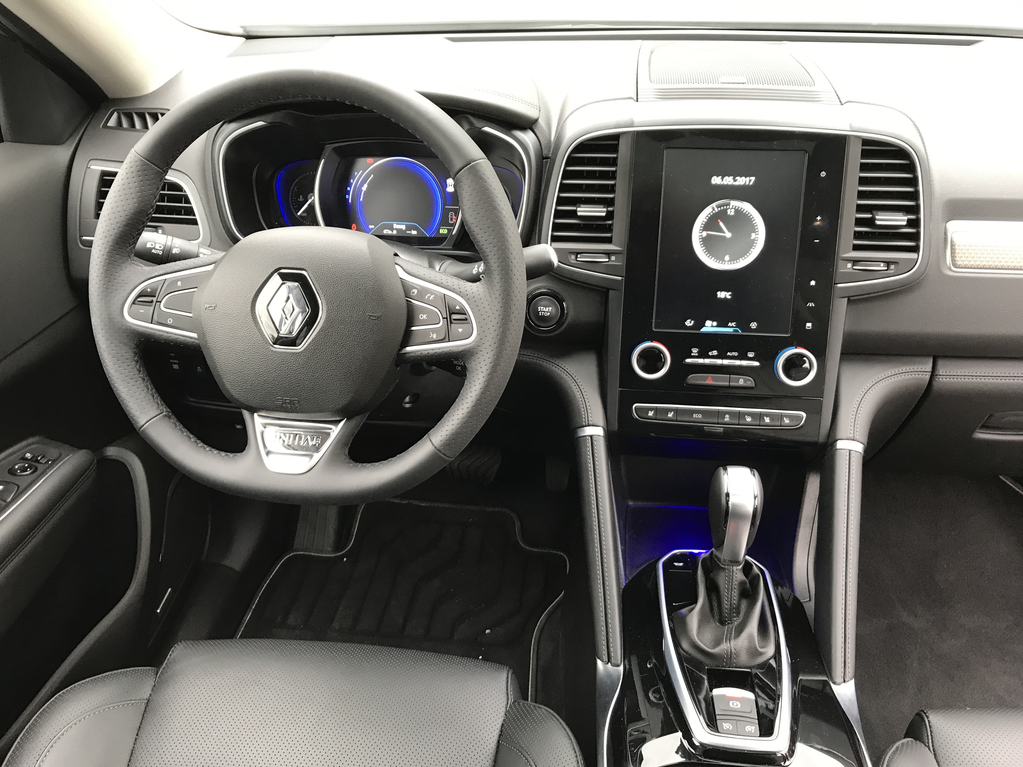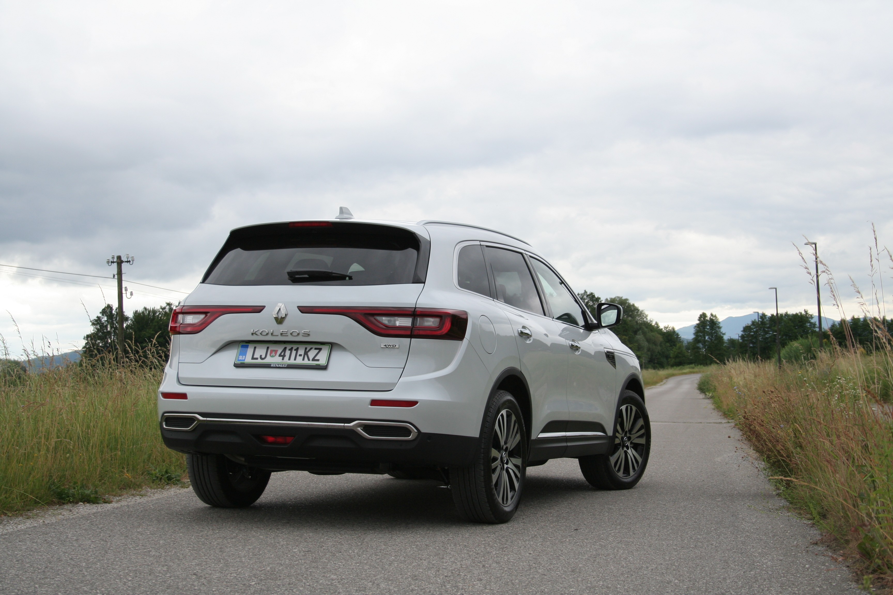 Koleos je tudi zelo 현실적인. Prtljažni prostor v velikosti 579 litrov se lahko hitro in preprosto poveča do velikosti 1795 litrov. Praktičnost dokazuje z odpiranjem prtljažnih vrat na gib z nogo. Koleos je prvi Renaultov model, ki ima popolnoma elektronsko zložljivo vlečno kljuko.