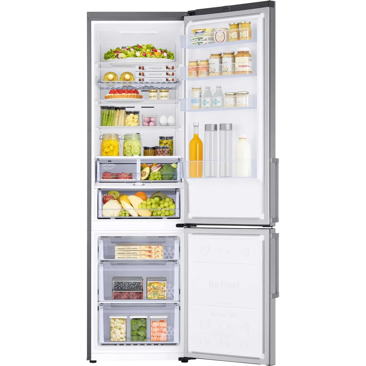 Ne izgubljajte časa in energije z odtajanjem hladilnika. No Frost tehnologija izboljša kroženje zraka, ohranja stalno temperaturo in preprečuje nabiranje ledu. Poleg tega živila ohladi veliko hitreje, s čimer manj obremenjuje hladilni sistem in podaljšuje njegovo življenjsko dobo.