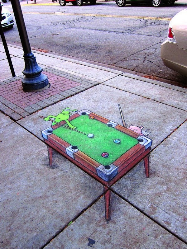 2001년부터 예술가 David Zinn은 그의 고향인 앤아버의 보도에 수많은 분필 거리 삽화를 그렸습니다.