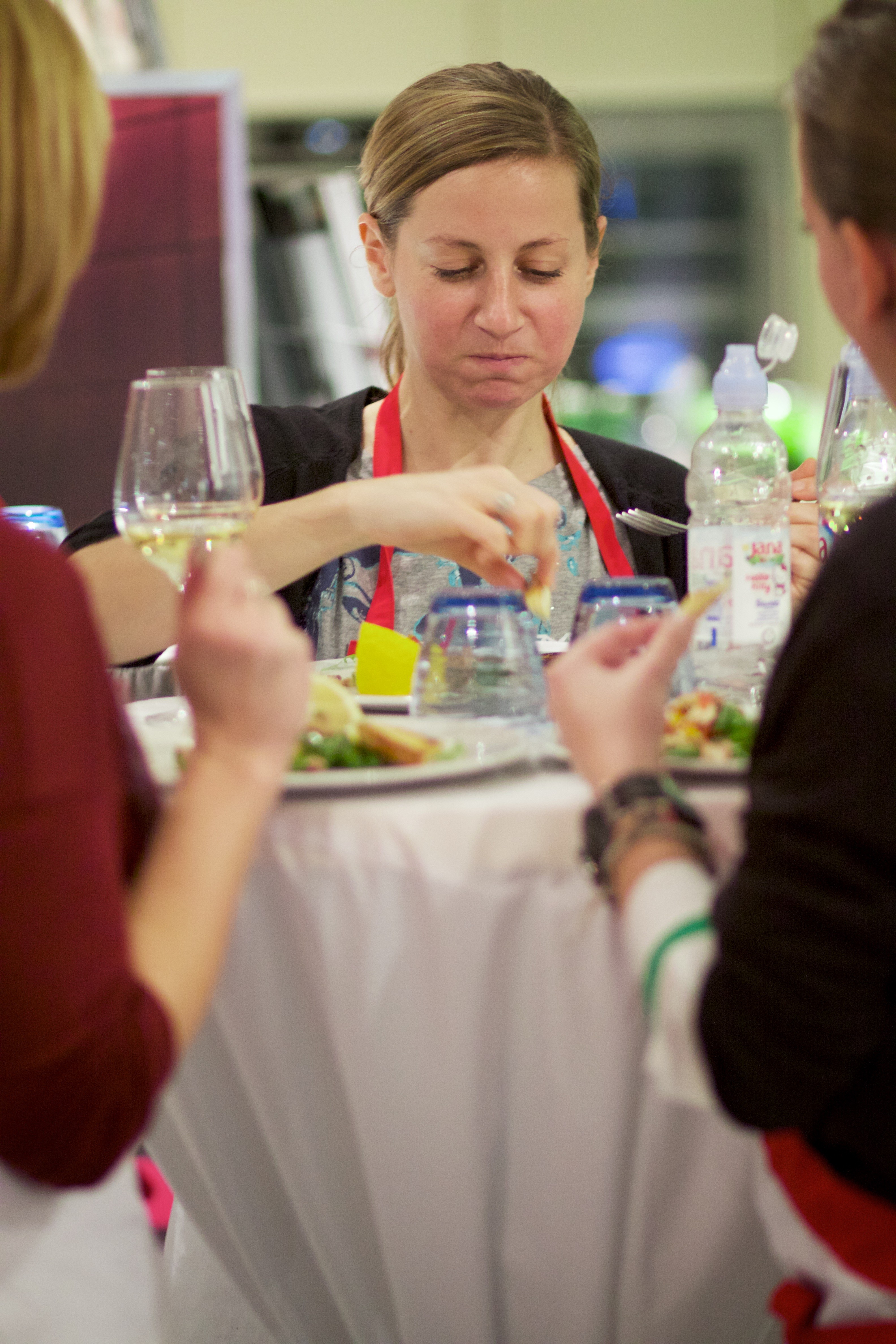 Spretno in z obilico humorja nas je popeljal in angažiral pri pripravi hobotnice v solati, kostanjevih njokov z gamberi in ribo, pečenega krompirja in govejega zrezka ter sladice s kozjim sirom, ki je lepo zaokrožila tri urice druženja ob štedilniku. Ob hrani pa je naše brbončice razvajalo tudi različno vino in uradna voda dogodka 피트.