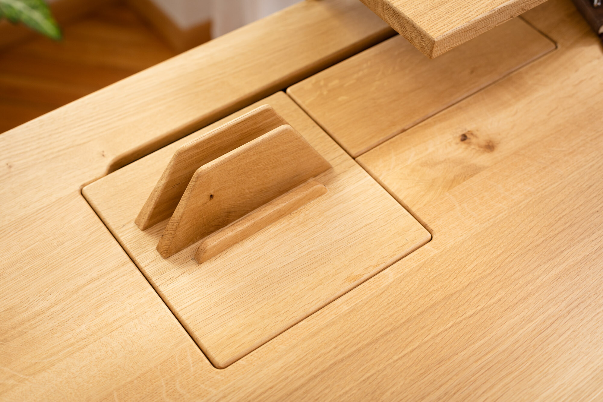 뛰어난 기능 ErgoHide je njegova prilagodljiva oblika. Za svojo mizo izberite med masivnim hrastovim lesom ali “inženirskimi materiali” ter tako izberite mizno ploščo, ki ustreza vašim potrebam. S tremi različnimi delovnimi površinami za možnosti iz masivnega lesa in MDF (vlaknene plošče srednje gostote) lahko ustvarite delovni prostor, ki odraža vaš slog in želje. A pri znamki EgoHide se niso zaustavili tu. Naredijo vam tudi mizo, popolnoma po vaših merah. Enostavno vaše želje vpišete v konfigurator!