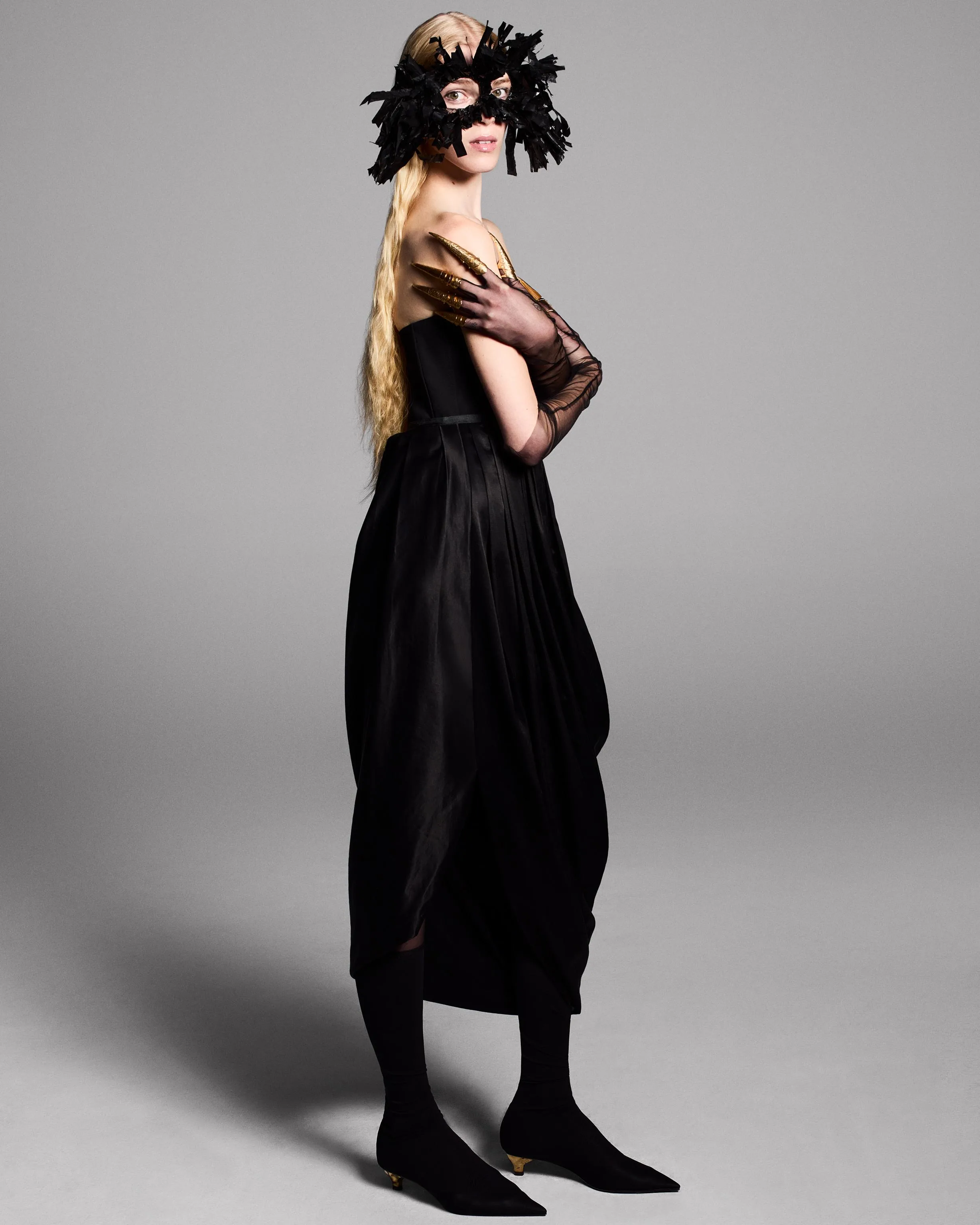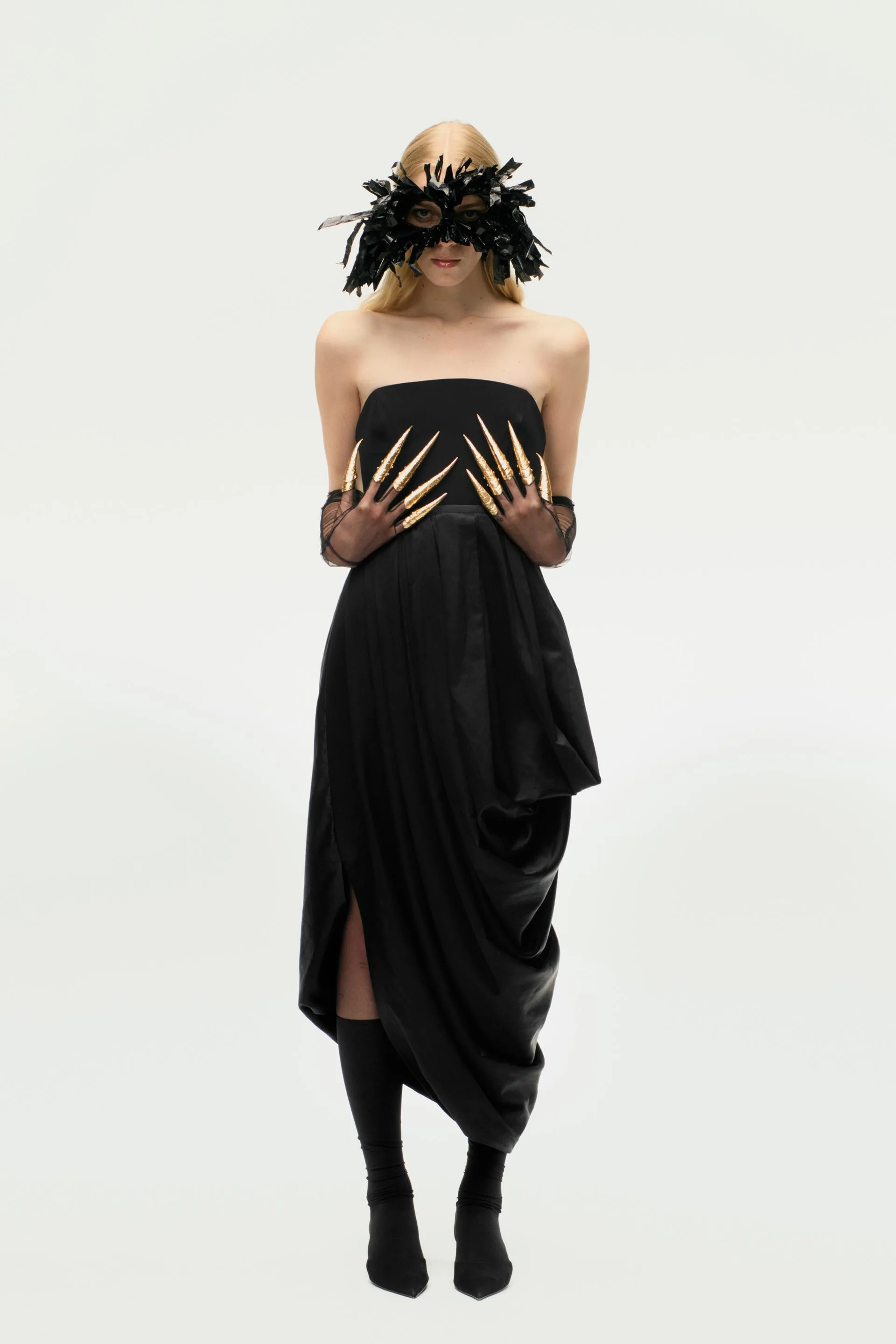 Zara 할로윈 컬렉션은 고딕 양식과 오뜨 꾸뛰르 요소를 결합하여 여러분을 밤의 여왕으로 만들어줄 것입니다. Morticia Addams가 입을 것 같은 드레스이지만 파리 패션 위크에 입을 만큼 세련된 드레스입니다.