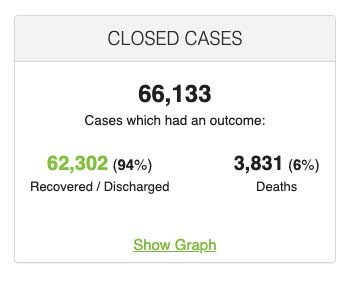 Do današnjega dne je zaključenih 66.133 primerov, od katerih je bolezni podleglo že 3.831 ljudi – ta številka predstavlja 6 odstotkov.