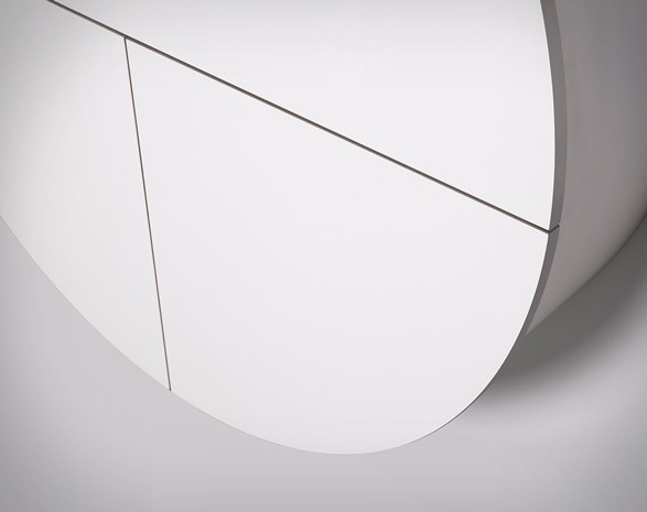 Okrogla stenska omarica skriva delovno površino, ki je dovolj velika, da lahko nanjo odložite prenosnik, tablico ali zvezek.