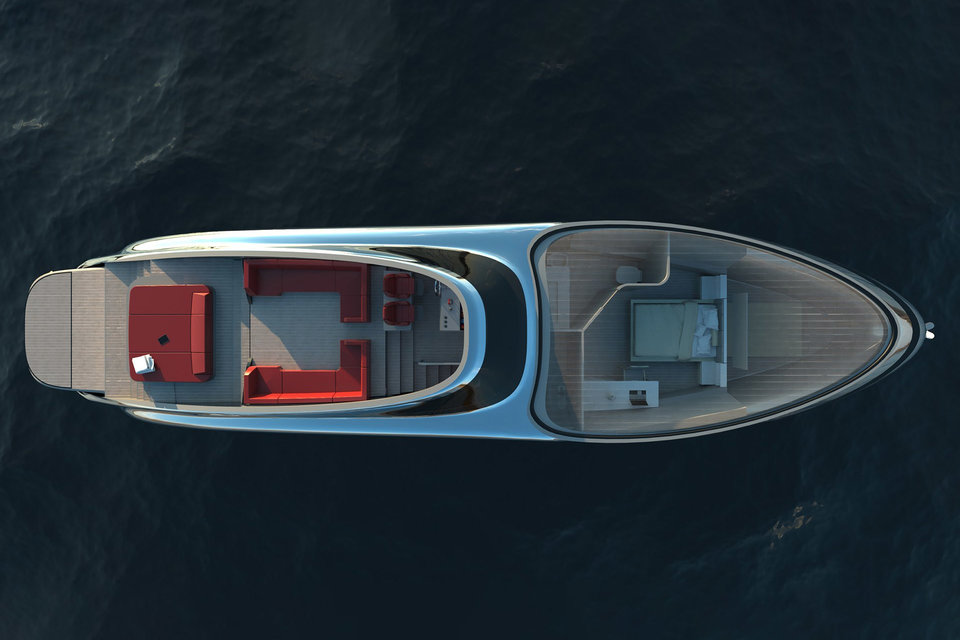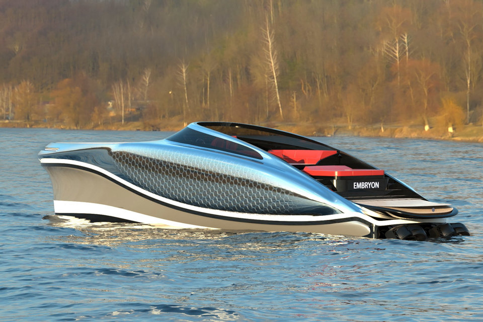 Lazzarini Design Studio Embryon konceptni gliser nas s svojo impozantno podobo in “prozornim” karbonskim trupom v trenutku prevzame. A prozoren je zgolj z notranje strani, zunanji del pa deluje kot ogledalo. Le to potnikom zagotavlja zaščito pred zvedavimi pogledi, medtem ko lahko le ti uživajo v neoviranem pogledu na prostrano morje.