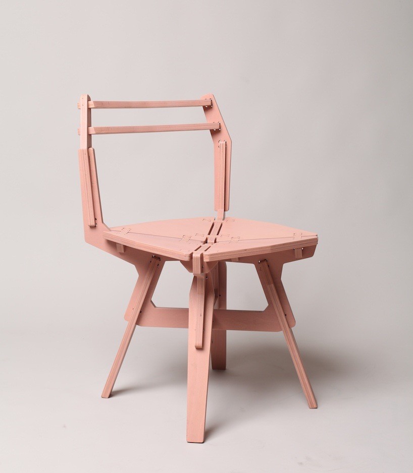 Pohištva Konstantina Achkova ne gre zamenjati za pohištvo, ki se zlaga kot puzzle ali ki ga sestavite sami . Njegovi kosi so namreč že sestavljenje kompleksne strukture, ki na prvi pogled delujejo kot nekaj iz laboratorija, a imajo eno zelo presenetljivo lastnost. Vsi stoli, mize, sanke in ostalo še živi dan ni povohalo lepila ali okusilo bolečino vijaka, ki se sicer tako rado zarije v njihov ‘meso’. Vsi kosi se namreč en drugega držijo po ‘naravni’ poti s pomočjo posebnega spoja (t.i. revolute joint), kar ustvarja in poustvarja vtis in idejo puzzla.