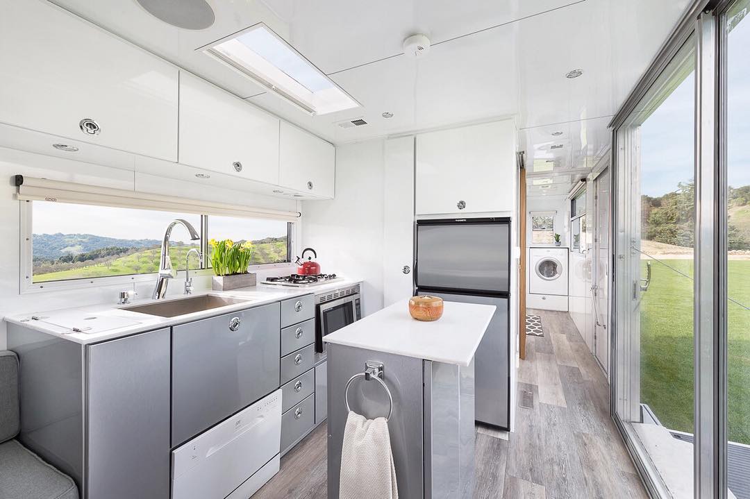 Vsak delček prikolice Living Vehicle 2020 je narejen premišljeno. V notranjosti 8,5 metrov velikega prikolice se nahaja osrednji prostor, ki ga sestavljata kuhinja in dnevna soba – slednja sta narejena tako, da zagotavljata prostornost, udobje in razkošje. V kuhinji nahajajo hladilnik, pomivalni stroj, mikrovalovna pečica, pomivalni stroj in kuhalna plošča s pečico, ki delujejo kar na sončno energijo.