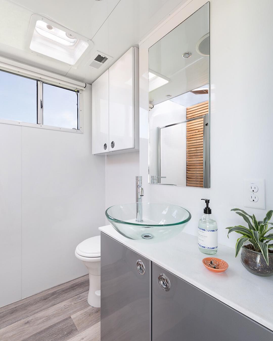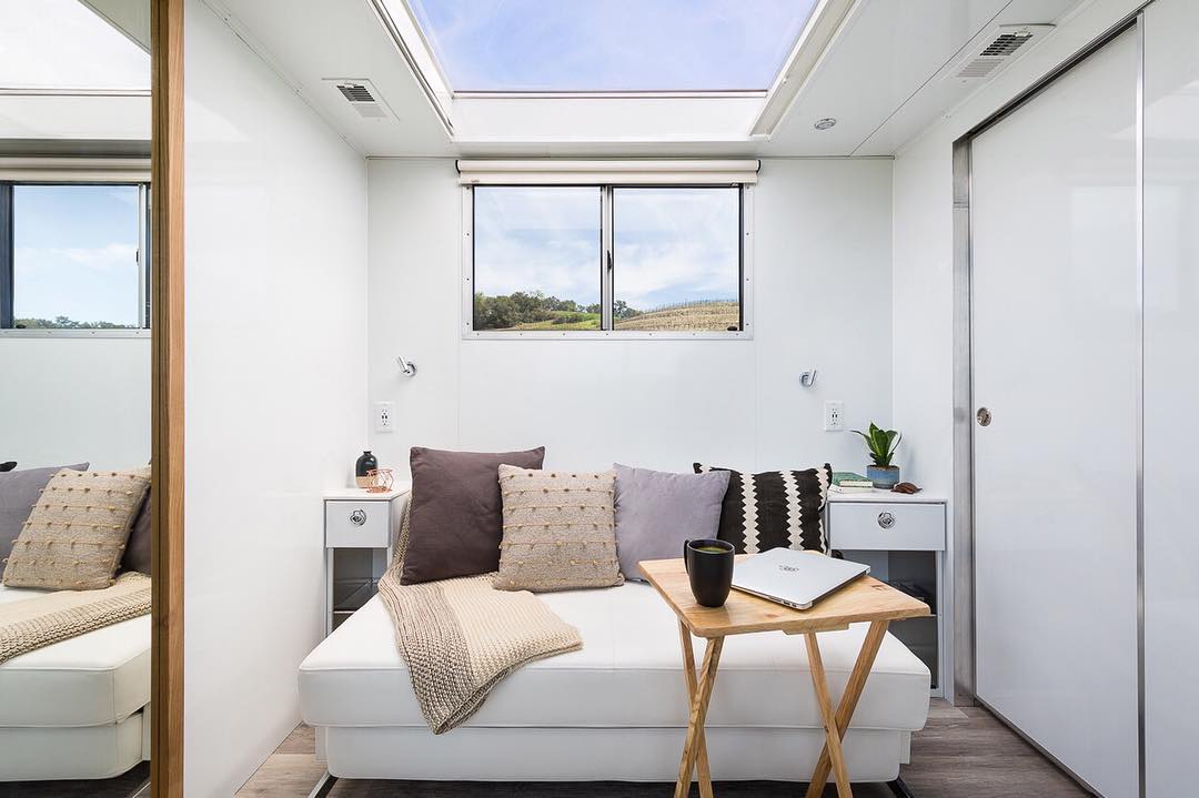 Pri oblikovanju prikolice so bili oblikovalci pozorni tudi na svetlobo – v prostor se namreč dovajajo velike količine naravne svetlobe, kar zamegli razliko med bivanjem v prostoru ali od zunaj v naravi. Ne samo da so povsod nameščena velika okna, strešna okna in steklena drsna vrata, temveč lahko v kopalnici najdete tudi poseben strop, ki omogoča tuširanje na naravni svetlobi. Oblikovalski presežek vas čaka, ko vstopite v spalnico, ki ni opremljena zgolj s pohištvom, temveč tudi tehnološkimi pripomočki, s katerimi želijo novim lastnikom prikolice zagotoviti popolno avdio in video izkušnjo.