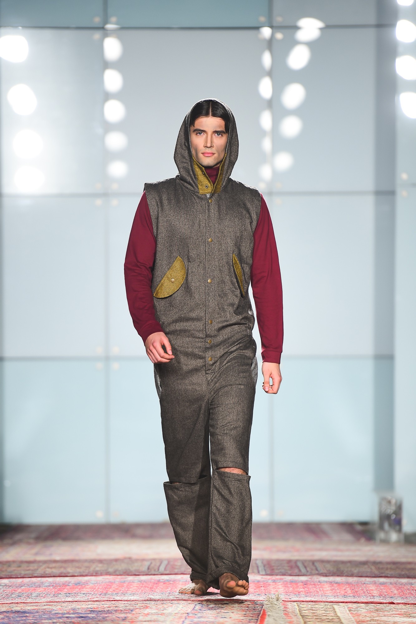“Moško kolekcijo je navdihnil film Oliver Twist, po katerem je tudi dobila ime. Veliko pozornosti sem posvetila podrobnostim, ki zaokrožijo celoto in Oliverja predstavijo na edinstven način, od klasike sem se odmaknila s kombiniranjem materiala, kot je tvid, s športnimi kroji, zanimivimi našitimi žepi v obliki kroga in potiski s peresi, saj takrat ljudje niso pisali s kemičnimi svinčniki, temveč s peresi. Vsi poznamo zgodbo Oliverja Twista, ki je moral krasti, da je lahko preživel, to je tudi razlog za globoke žepe na njegovih hlačah. Barve so jesenske, v kombinaciji s sivo.”