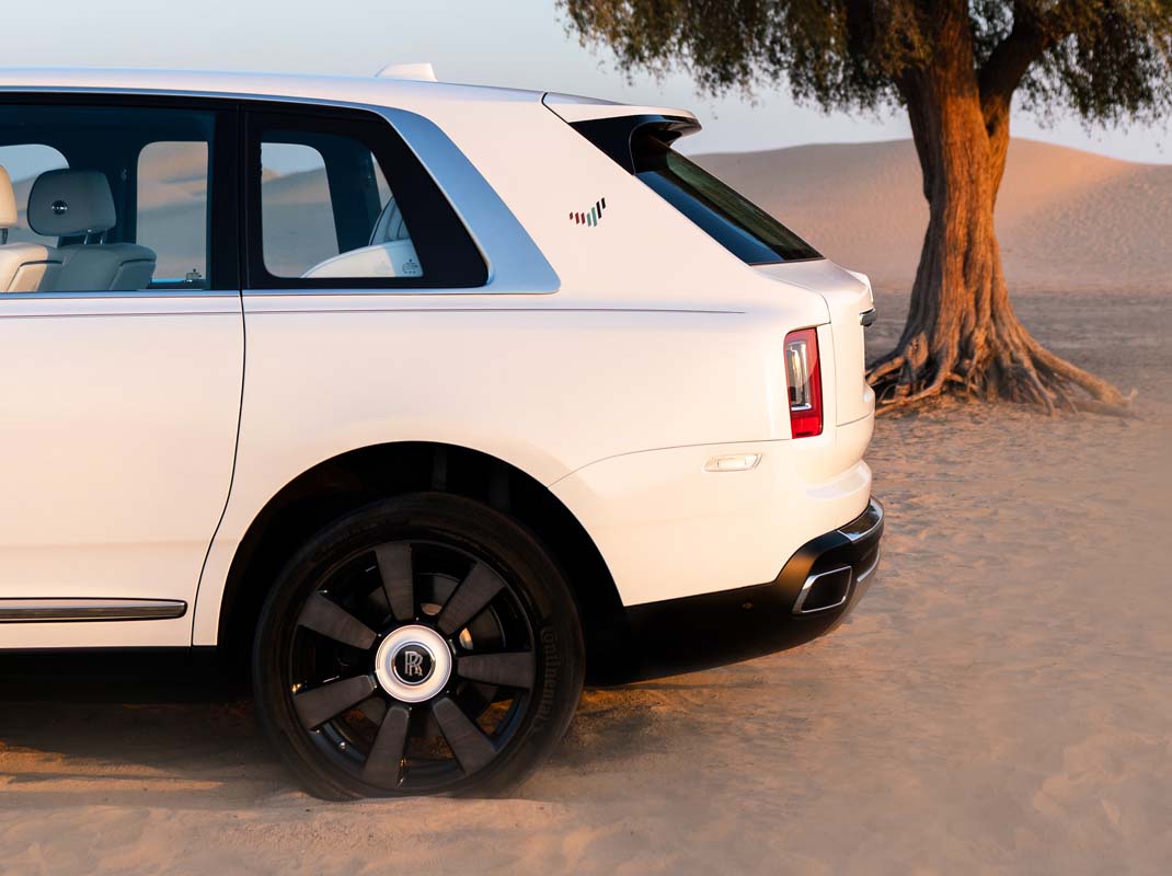 Mansory Cullinan Special UAE je dobil nov, tako imenovani ʺbody kitʺ. Spremenjeno prednji del ima nameščen usmernik zraka, ki naredi ʺnosʺ avtomobila še nižji. Stranice poudarijo nižji in preoblikovani pragovi, na zadku pa dominirata preoblikovan odbijač in strežni usmernik zraka. Nov usmernik zraka je tudi v zadnjem odbijaču, v njem pa sta prostor našli dve luknji, za dva dvojna trapezoidna zaključka izpušnih cevi. Prestižni Cullinan se vozi na unikatnih platiščih velikosti 24-palcev.