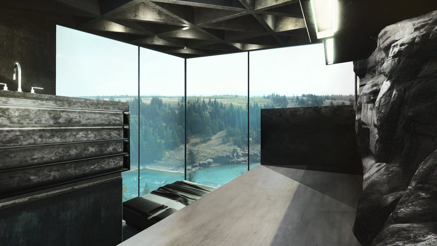 Primarna lastnost betonske hiške Maralah je odmik od mestnega vrveža. Postavili so jo v skalnat greben, tako da je delno potopljena v skalo, delno pa konzolno visi čeznjo. Zgrajena je iz neobdelanega betona, mat črnega jekla in stekla. Dve stranici sta popolnoma zastekljeni, kar obiskovalcu nudi izjemno lep pogled na pokrajino in turkizno modro reko, ki teče pod njo.