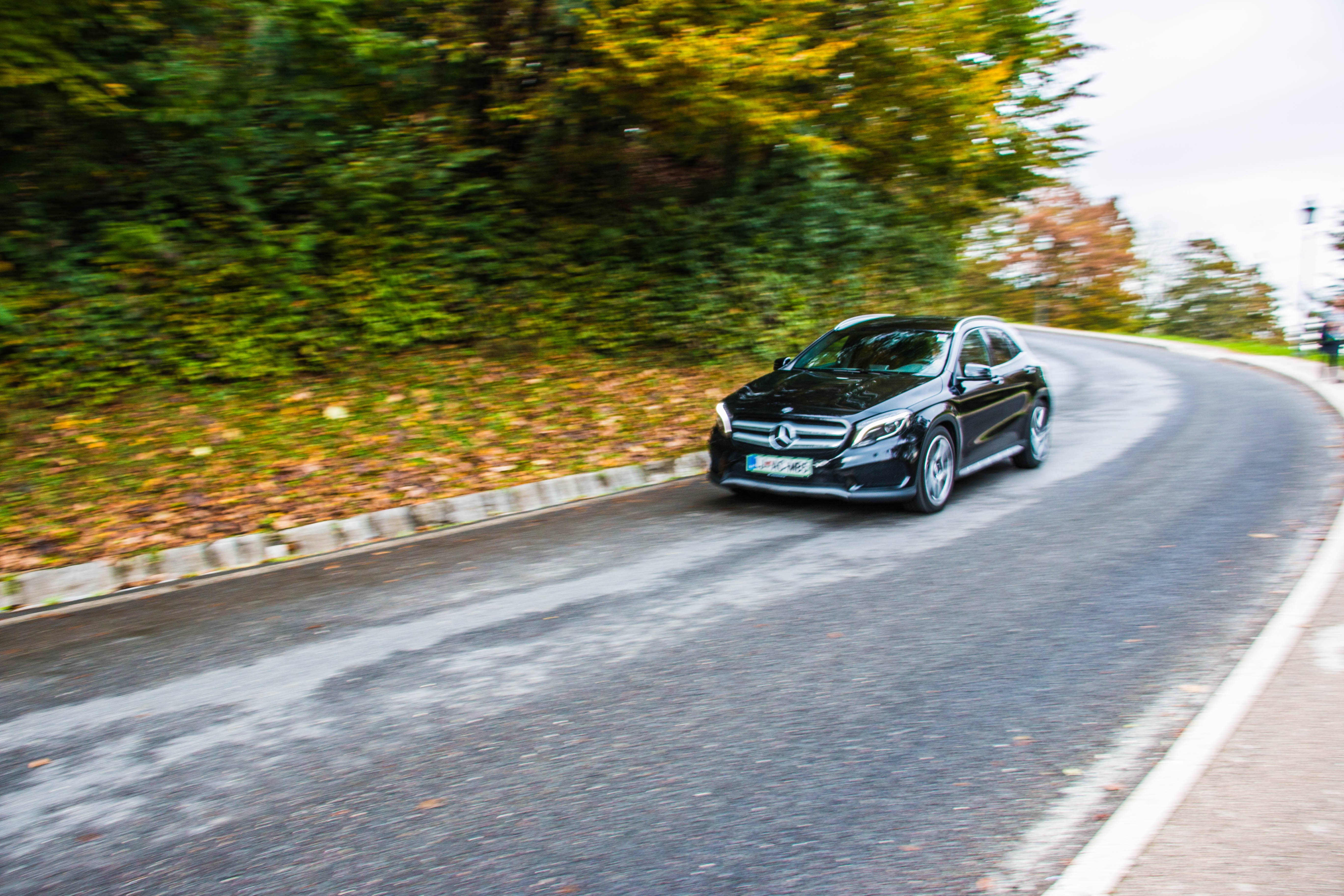 Občutki v vožnji so izjemno pozitivni, saj je avtomobil lahkoten in igriv v zavojih. Podvozje je kljub prenosu le na prednji par koles uravnoteženo in ko pride do zdrsov so le ti kontrolirani in skoraj igrivi. V trenutku, ko si voznik zaželi bolj dinamične vožnje izjemno lepo sodelujeta tako dizelski motor, kot avtomatski menjalnik z dvojno sklopko, ki na cesto odlično prenašata 125 kW, oziroma dobrih 168 konjev. Le ti so germansko močni in ne le na papirju. GLA tako suvereno pospešuje od 0 do 100 km/h v 8.3 sekunde in doseže končno hitrost 215 km/h. Zaradi odličnega navora 350 Nm,  všečno “vleče” v vseh območjih in vselej zagotavlja zadosti moči. Pri tem pa ni požrešen, saj je na testnem krogu porabil 6.3 litra goriva na sto kilometrov.