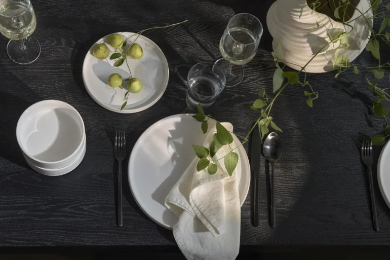 Nova H&M HOME kolekcija temelji na kontrastu med belino in globoko črno, popestreno z nežnimi odtenki zelene, peščenih tonov in toplih lesenih elementov. Monokromatski odtenki ustvarjajo popolno ozadje za pomladno umirjenost in eleganco. Pohištveni kosi, kot so okrogle mize iz marmorja in lesa, grafični stoli ter mehke luči s prepoznavnim vzorcem, delujejo tako skupaj kot vsak zase. To je zbirka, ki kliče po premišljenem dekorju, a ponuja tudi dovolj svobode za igro.