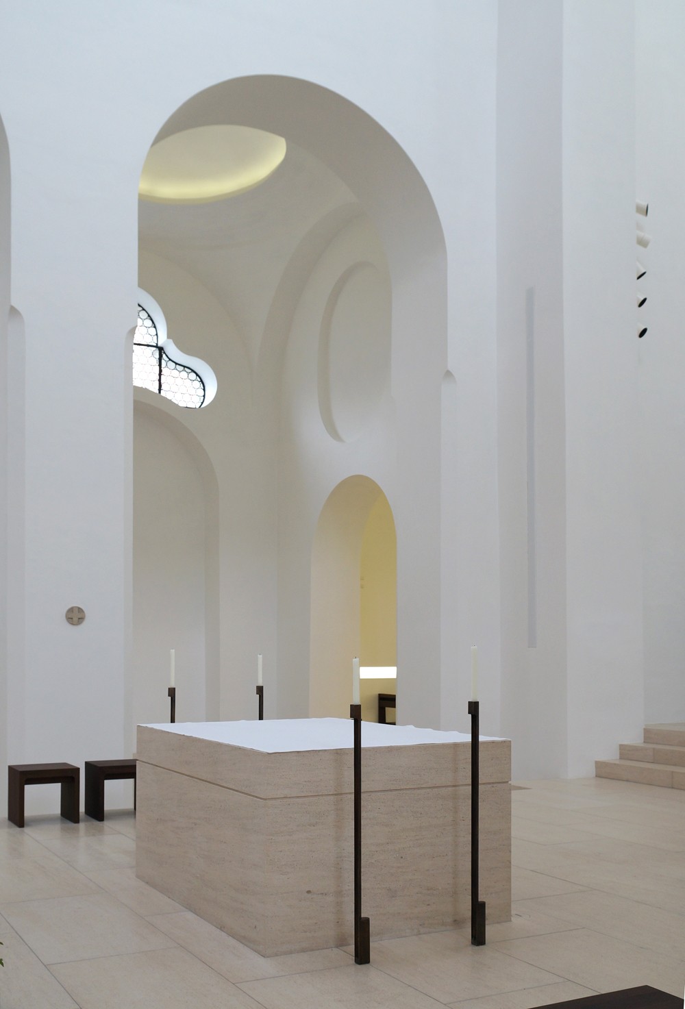 Posebno pozornost so namenili igri svetlobe. Medtem ko je osrednji prostor, cerkvena ladja najbolj svetel, v preostalih predelih prevladuje pridušena svetloba. To med drugim ustvarja tudi oniks na oknih. Nekje so zapisali, da ki sonce zunaj že zahaja, v tej cerkvi šele vzhaja – občutek sončnega vzhoda naredi rahlo rumenkasta igra svetlobe v nekaterih predelih. Cilj, ki so ga imeli arhitekti v mislih, je bil ustvariti izčiščen, skromen bel prostor brez motečih dejavnikov, da se obiskovalec lahko osredotoči na meditacijo, molitev in razmišljanje. Njihov cilj je bil prinesti v cerkev svetlobo in čistost, prav tako pa so imeli v mislih spoštovanje do predhodnih arhitektov in njihovih vizij. Glede na fotografije jim je prav dobro uspelo.