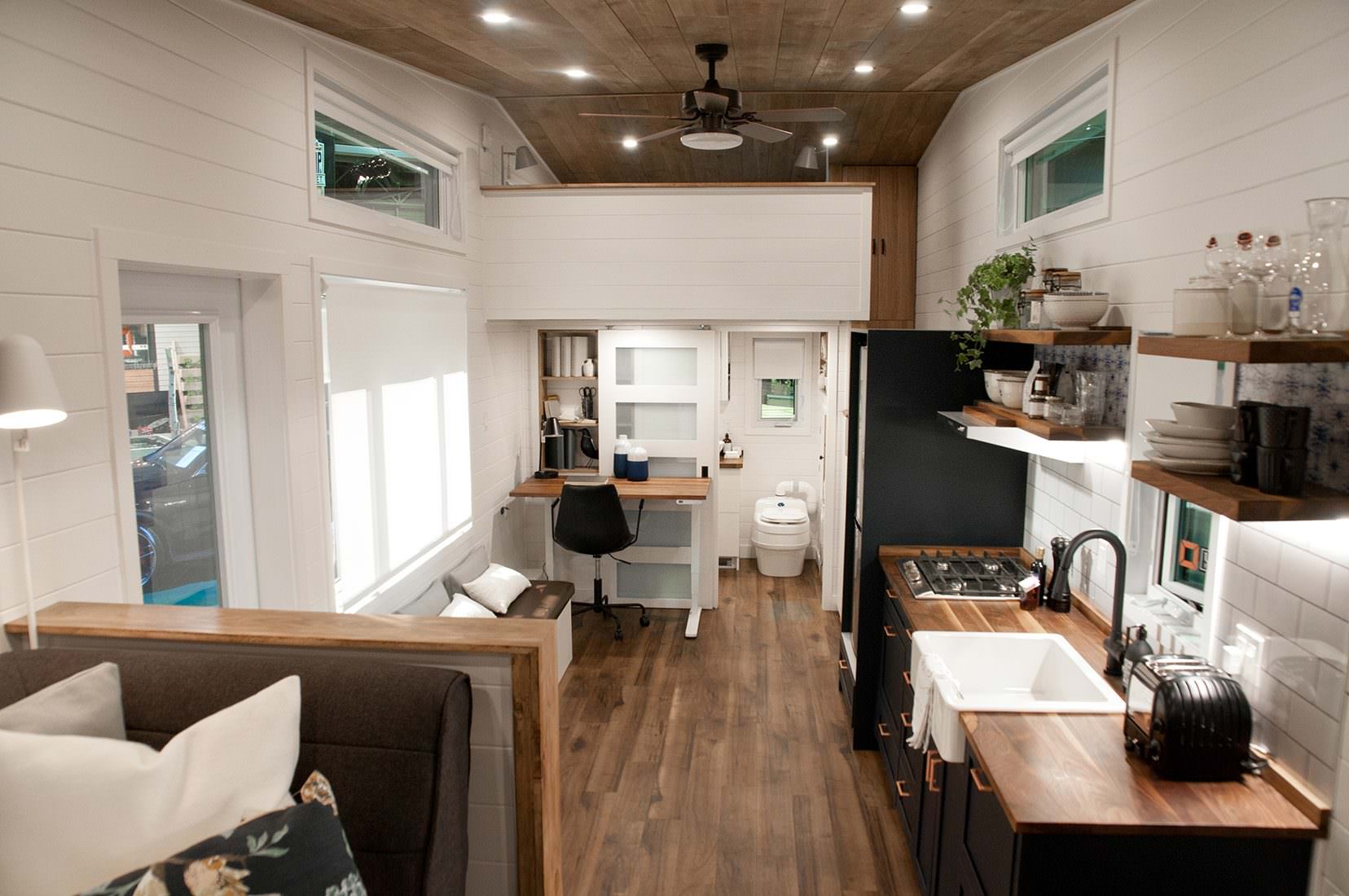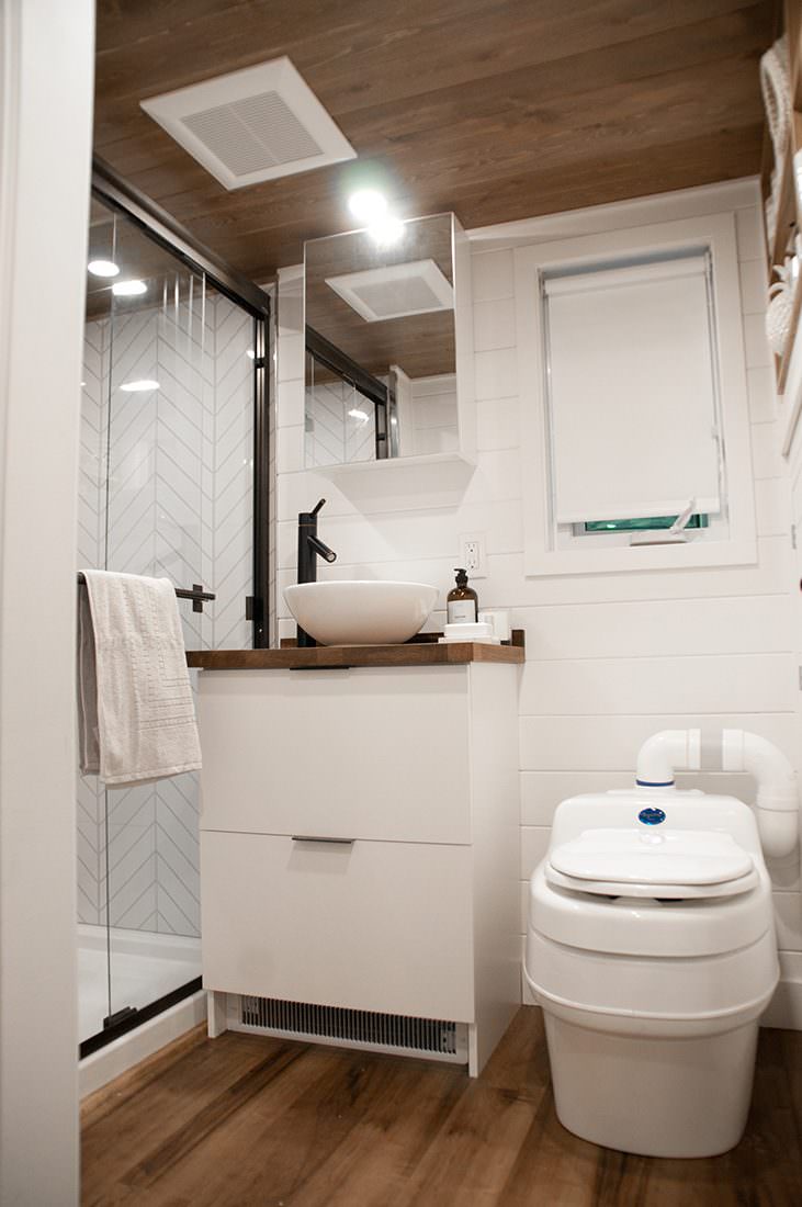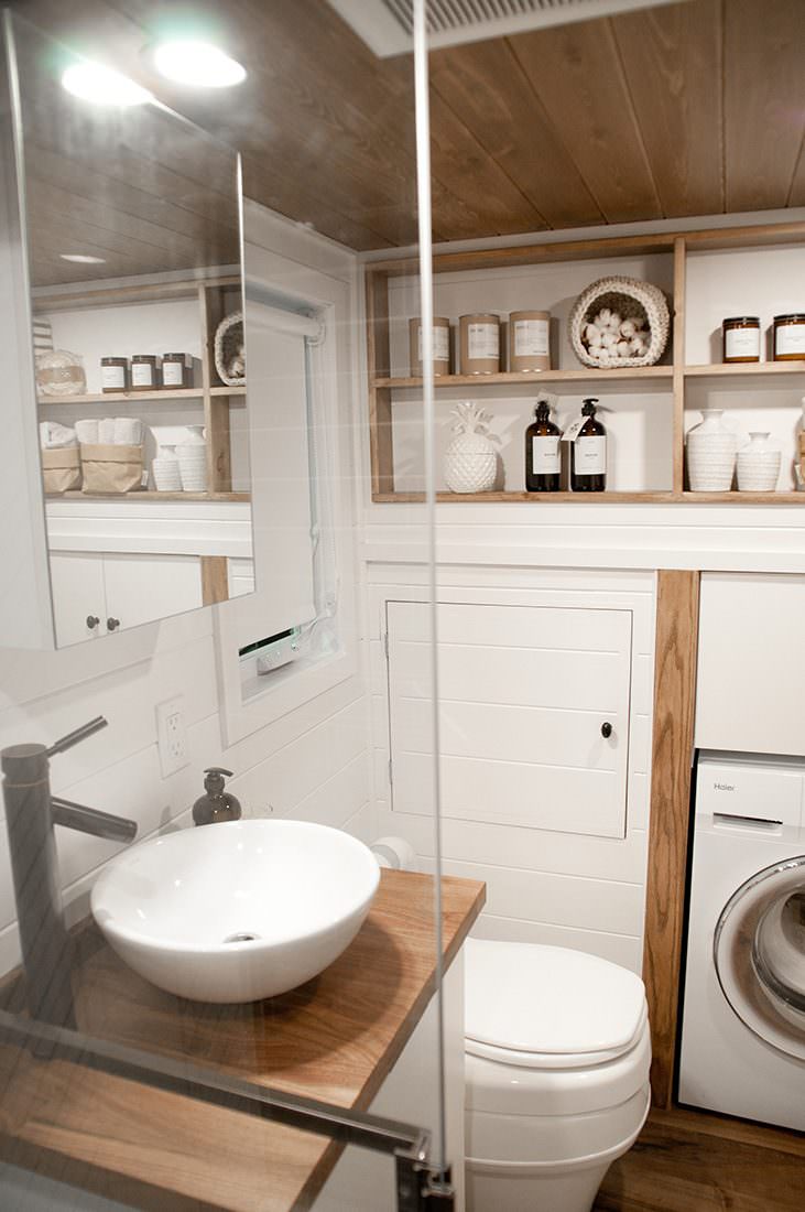 Podjetje Monimaliste Houses iz Kanade je skupaj s stranko iz Kalifornije dizajniralo mobilno hiško Noyer. Notri najdemo vse: od spodobno velike kuhinje z ločenim pultom za pripravo hrane, pomivalnim in pralnim strojem, ki je obenem sušilni stroj, do hladilnika polne velikosti ter dnevnega dela s televizorjem. Kopalnica s prho je seveda samoumevna. Nadstropje više je ločena spalnica s posteljo za dve osebi. Da je vsak košček prostora dobro izkoriščen, se vsepovsod skrivajo predali. Ker je streha rahlo nagnjena, je mobilna hiška primerna tako za deževne kot zasnežene lokacije, saj bo sneg z lahkoto zdrsnil z nje.