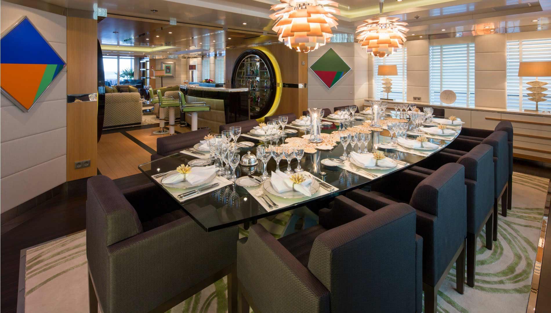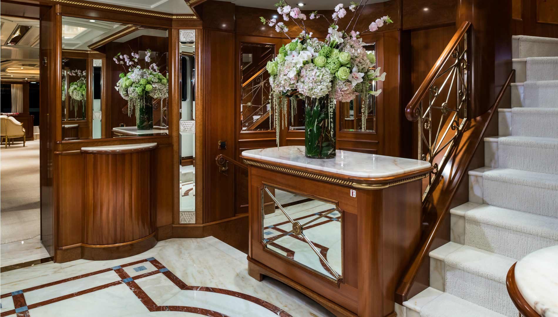 Plovilo sestavljajo najrazličnejše komponente, ki pripomorejo k veličastnemu videzu in udobju. Sončna paluba vključuje zunanji kino in pomični masažni bazen za 8 oseb. Jahta se ponaša še s savno, telovadnico, masažno sobo in zasebnim kozmetičnim salonom.