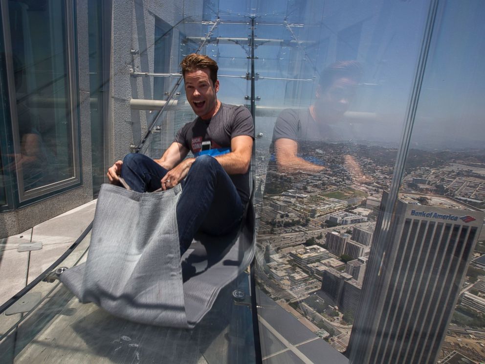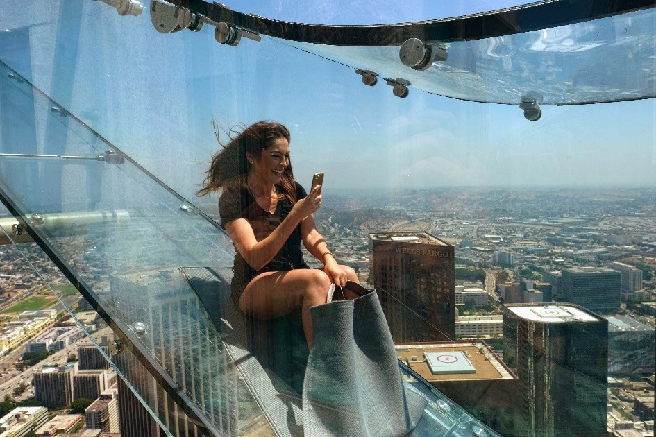 Stekleni tobogan Skyslide se nahaja 305 metrov nad tlemi in štrli iz 70. nadstropja losangeleškega nebotičnika US Bank Tower. Več o atrakciji si lahko preberete v prispevku SkySlide – stekleni tobogan 305 metrov nad tlemi!