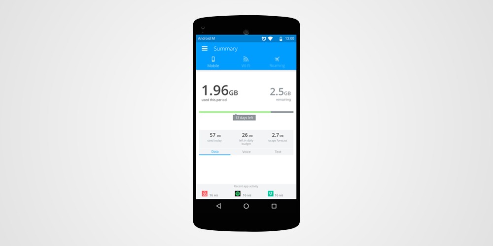 DataMan Next je preprosta aplikacija, ki je sposobna beležiti vašo porabo prenosa podatkov v realnem času. Na zaslon mobilnega telefona si lahko dodate pripomoček (widget) in se tako izognete vsakokratnemu odpiranju aplikacije. Hkrati vam aplikacija napoveduje količino prenosa podatkov in vas opozori o čezmerni uporabi.
