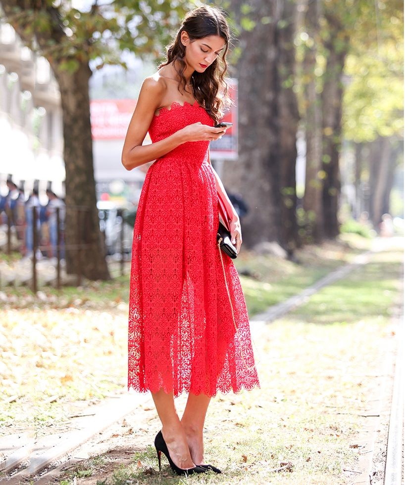 En rød kjole er det motsatte av en svart kjole - den vil få deg til å skille deg ut i mengden. Folk vil stirre på oss med begeistring og beundring. Tross alt vil ingen mann savne oss.