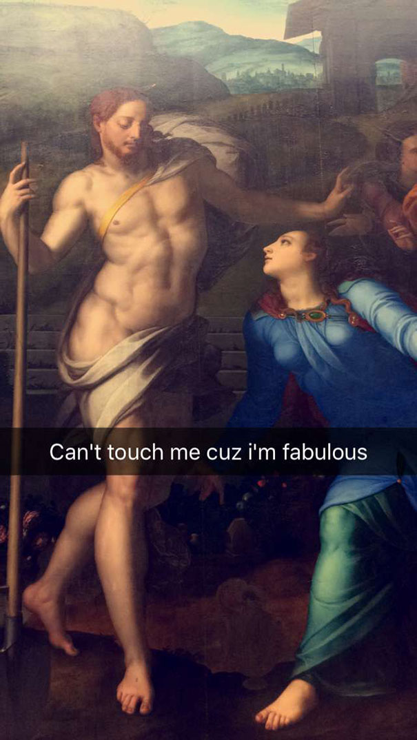 Museer kan være en virkelig flott ting, men du må innrømme at noen av dem er ganske kjedelige. Så det er ingen overraskelse at noen mennesker blir lei av dem. Når vi ser så mange fresker og klassiske malerier for uinnvidde og søndagskunstelskere, blir de alle mer eller mindre like. Men museer trenger ikke å være kjedelige, spesielt i Snapchat-tiden. Vet du ikke hva vi mener? Så ta en titt på dette bildegalleriet og alt vil være klart for deg umiddelbart. Hvis kunstverk kunne snakke...