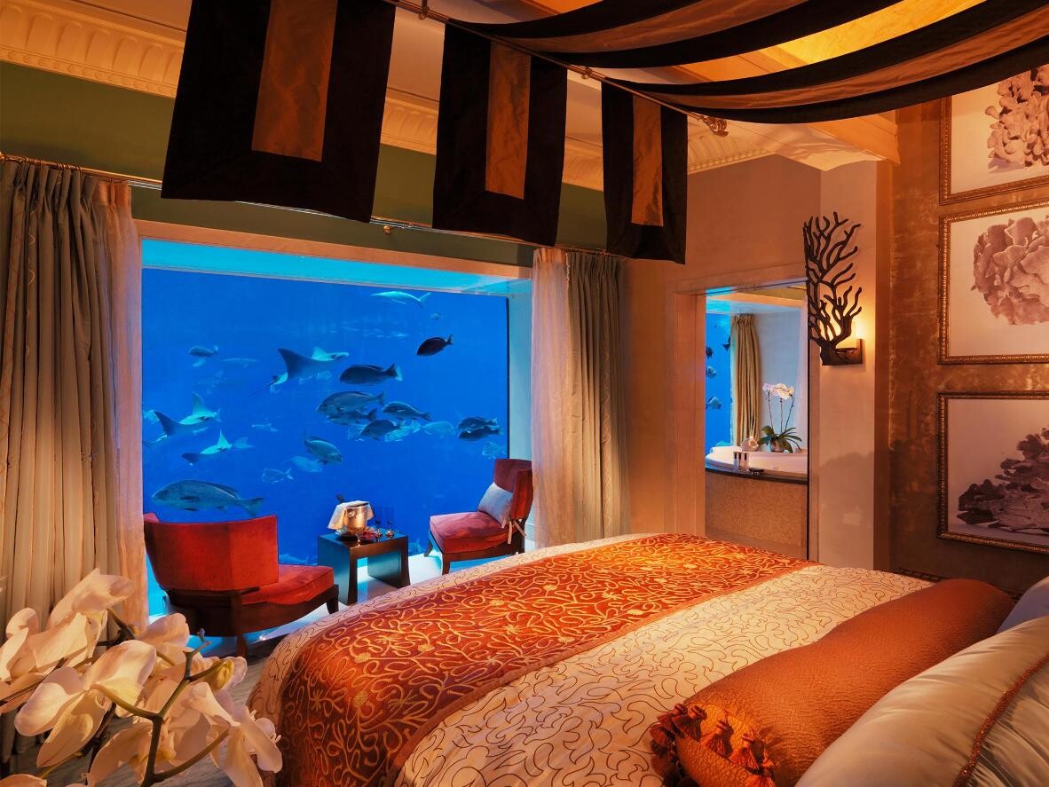 Atlantis The Palm ligger på den verdensberømte menneskeskapte palmeformede øya med utsikt over Persiabukta. Den virkelige skatten er gjemt under havoverflaten, da en privat heis tar deg til to undervannssuiter, kalt Poseidon og Neptun. Luksussuiter med marmorgulv og store bad gir utsikt over de forskjellige hendelsene i havet, som er hjemsted for mer enn 65 tusen dyrearter.