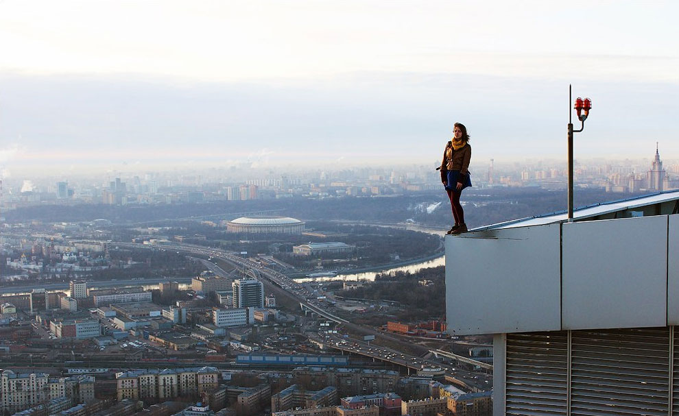 Du har sikkert hørt om det Vadim Makhorov og Vitaly Raskalov, de dristige russerne som besteg noen av verdens høyeste bygninger uten klatreutstyr. Møt nå deres kvinnelige motparter, Angelo Nikolau, Russisk skjønnhet, som på kanten og toppen av høye bygninger poserer i sexy positurersom å være på et moteshow og ikke så døden i øynene.
