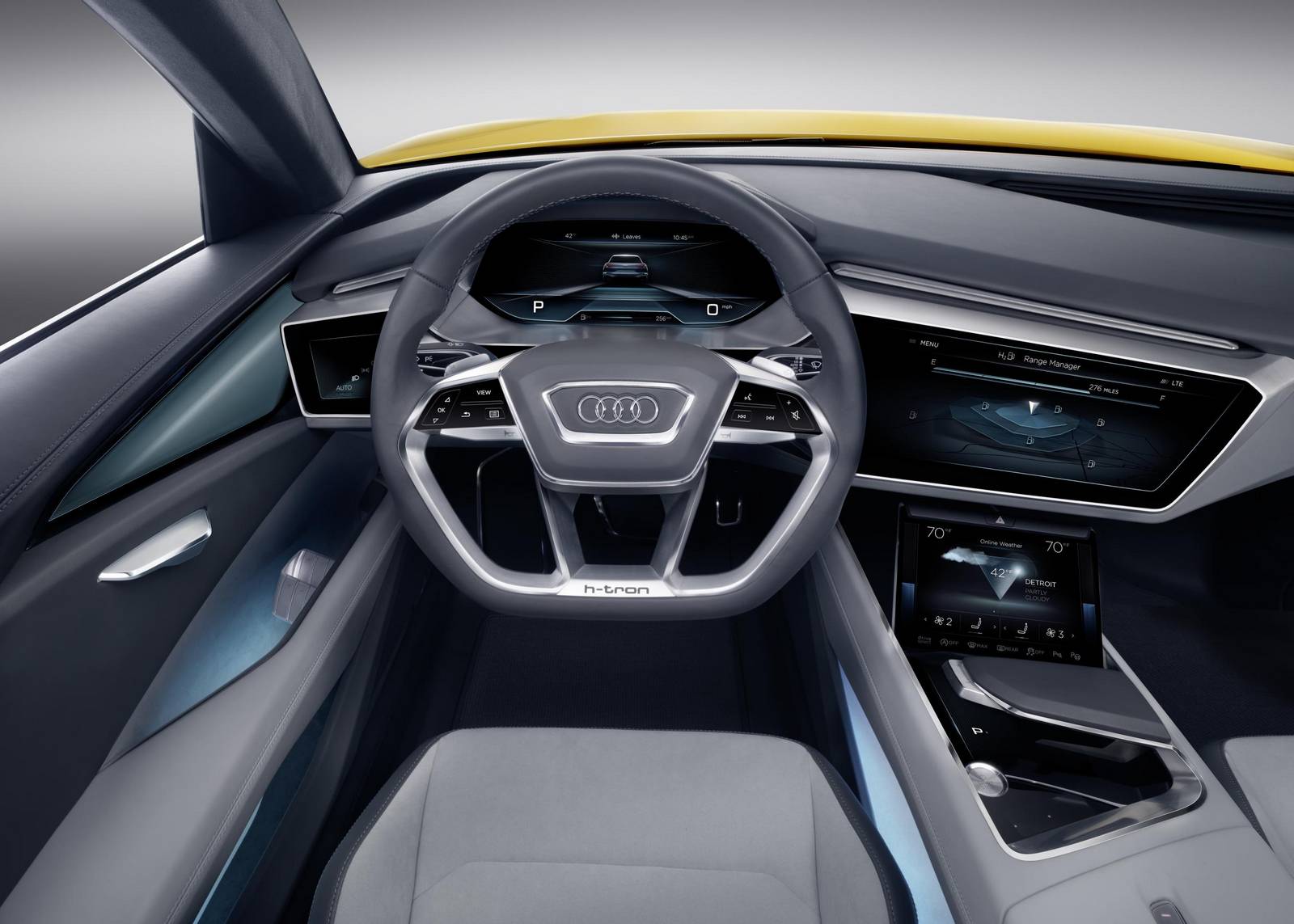 Audi avduket H Tron Quattro-konseptet på Detroit Auto Show, og avslørte potensialet til hydrogen som drivstoff. Det er en studie som på mange måter ligner den nylig presenterte E-tron Quattro-studien og gir et innblikk i den autonome kjøringen og parkeringsteknologien som vil være en del av standardutstyret til Audi A8 sedan som kommer i 2017.