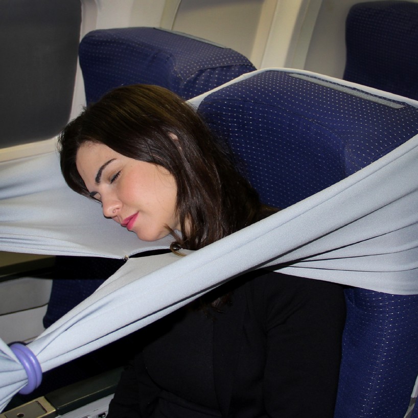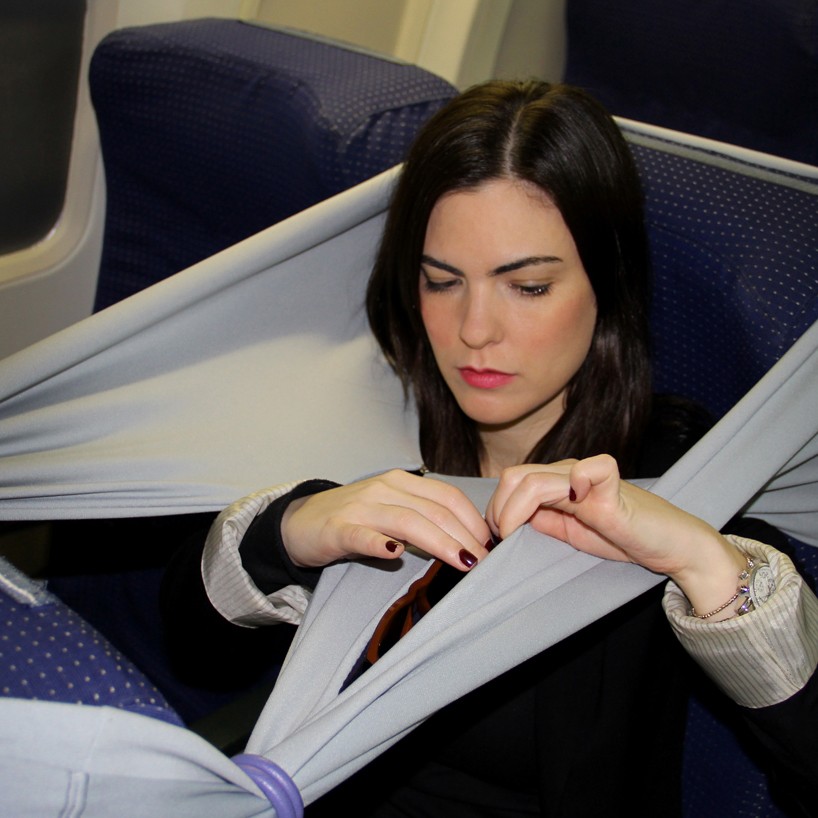 Obligatorisk utstyr for gjeld reiser med fly er definitivt en hornformet oppblåsbar nakkepute. Men hvis denne tilbyr deg komfort, gir deg ikke noen personvern. Det er her fundamentalismen til to israelske studenter kommer inn. Idan Noyberg og Gal Bulk, B-Tourist Strip, ”hengekøye" og "spansk vegg" for hode og nakke . I tillegg til å sove komfortabelt oppreist, lar den deg bekymringsløst nyte filmen uten å føle deg rar eller vanskelig fordi det sitter et barn ved siden av deg og du ser på Saw.