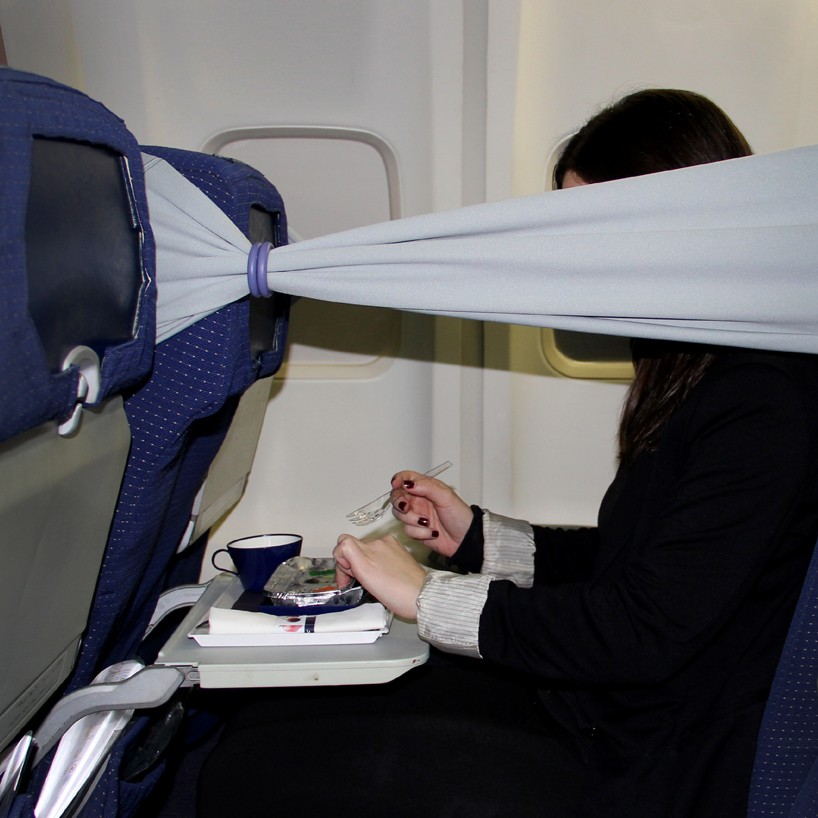 Alle vi som ikke har råd til å fly på første- eller businessklasse blir dømt til økonomiklasse, noe som betyr at vi under flyturen blir klemt mellom fremmede, ofte til og med mellom våre egne knær og uten noe privatliv. For å gjøre slike flyreiser mer behagelige for passasjerene har to israelske studenter ved Bezalel Academy of Art and Design forberedt B-Tourist Strip, et elastisk tilbehør til setet, som er en «hengekøye» eller «spansk vegg» for hodet og nakke.